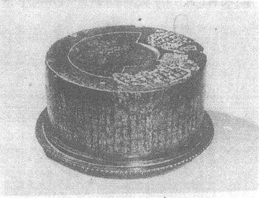 明。直径18.5厘米,高14.4厘米。天津市艺术博物馆藏。广东肇庆端石,色苍黑,外有盒,形似石鼓,砚面水池呈钺形,其面、背、周精工镌刻有“而师”、“马荐”、“吾水”、“吴人”、“石鼓”、“子子孙孙用之永保”、“吾车”、“汧沔”、“田车”、“车工”、“𠦪敕”、“灵雨”等秦石鼓文,不计重字、残字,共434字,与宋拓石鼓文字相近,超出现存石鼓文字一百有余。砚背镌刻“东海顾从义摹勒上石”三行九字楷书款,乃知砚上石鼓文字出此高手。顾从义(公元1523—1588年),字汝和,号砚山山人,上海人,嘉靖中以善书被征入朝,授中书舍人,隆庆初以修国史擢升为大理评事,曾摹刻有著名的《淳化阁贴》。