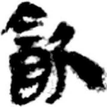 “,歠也。从欠,酓声。凡之属皆从。,古文,从今水。,古文,从今食。”(於锦切)甲骨文或作、、、,徐中舒说象人俯首吐舌捧尊就饮形,是“”字初文。甲骨文字形本为会意字,到西周金文中,字所从之“舌”形变为“今”,“人”形讹变为“欠”。此后字形可分析为从欠从酉会意,会饮酒或其他流食之意,今声,如、、、。“”字写法最早见于春秋时期金文,作,其所从食乃今与酉讹变而成。卜辞或用其本义,如:“昃,亦有出虹,自北,于河。”(《合》10405)[1]金文中也用其本义,如沇兒钟:“孔嘉元成,用盘酉(酒)。”[2]后通用字形为“飲”,简化为“饮”。部只有一个属字“歠”,云:“也。从省,叕声。吷,歠,或从口从夬。”古书多借“啜”字。