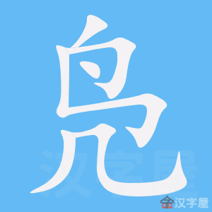 用法说明上边是“鸟”省末笔一横。由“”构成的字还有“岛” “枭” “袅”等