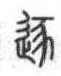 甲骨文从鹿 (或从豕)、从足,意为追逐野兽。