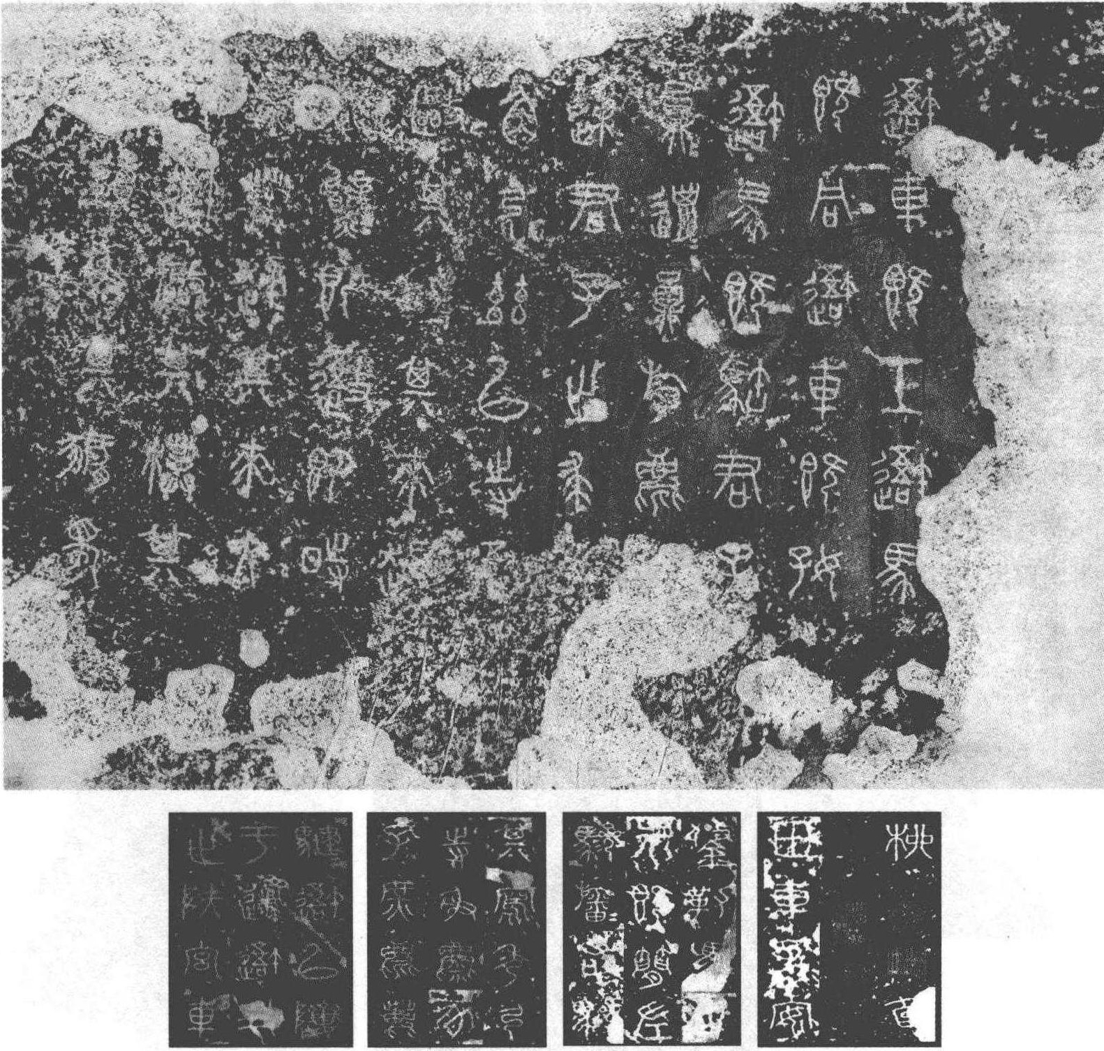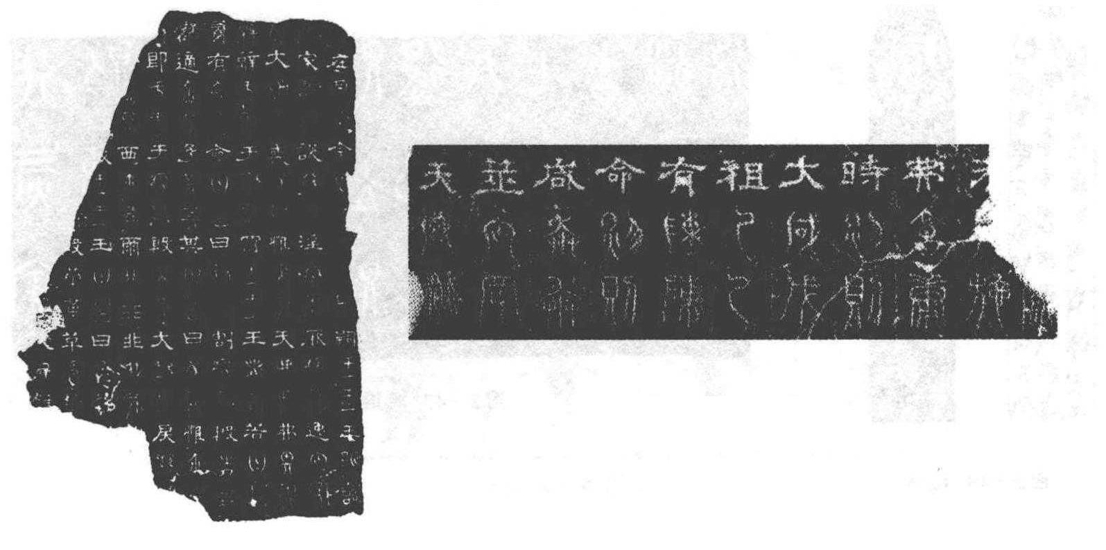 释义 | [一]石刻文字 [一]石刻文字1. 石鼓文 图2—44 石鼓文拓片 2. 诅楚文 诅楚文 (图2—45) ,是秦惠文王后元十三年、楚怀王十七年 (前312年) 的秦国石刻文字。共三件,皆发现于宋代,以所祀神名命名。一为巫咸,有226字; 一为大沈厥湫,有318字; 一为亚驼,有325字。三刻石内容基本相同,是秦王因楚伐秦,向三位神诅咒楚王,祈求他们克制楚兵,恢复秦边城的文辞,故后世称为诅楚文。其文字与石鼓文和籀文基本一致,是战国中后期的秦国文字。原文和拓本早已不存,只有后人拼凑的翻刻本,现存有宋人所刻的绛帖本、汝帖本和元至正中吴刊本,前二者无亚驼,后者三石俱全,各自成文。 图2—45 诅楚文 3. 《说文解字》和 “三体石经”中的古文 《说文解字》 中的古文,因多方面的原因,目前尚难得出一个精确的数字。《说文解字·叙》云: “今叙篆文,合以古籀。”意思是全书以小篆为正字,凡古文、籀文与小篆异者,则于篆文重出古文、籀文别体,并加以注明; 而古文、籀文与小篆同者或篆文有而古文、籀文无者,则不复识别,这是通例。其变例是先出古文、籀文作正字,下别出篆文重文。故 《说文解字》 中的古文,应当包括在重文与正字之中。其重文中可确定的古文字数为429个,异体字53字,共482字。其正文中可确定的古文仅有数个。这两项加上据《说文解字》说解及《玉篇》、《汉简》等字书所引可补出的二十余字,共510个左右,而许慎所见古文应当决不止于此数。 《说文解字》 中的古文,主要来源于壁中书。汉景帝时,居于曲阜的鲁恭王拆毁孔子家的旧宅,在夹壁中得古书 《尚书》、《论语》、《礼记》和《孝经》等数十篇,武帝时孔安国后人献之于朝廷。壁中书,当是秦始皇焚书时,孔子后人所藏。 《说文解字》 中的古文,原貌今已不可知。莫友芝 《唐写本说文解字木部笺异》所见古文,笔势均作悬针体,与篆体几乎无别,而与大徐本里的古文笔势作丰中锐末或丰上锐下之状不同。这表明 《说文解字》的古文屡经传抄,字体已发生一些变异,有失战国古文风格之处。 三体石经,也称正始石经、魏石经。是三国魏正始二年 (241年)刊立,共35石,刻有《尚书》 、《春秋》和《左传》 (仅到恒公),每经用古文、小篆和汉隶三种字体对照,总共约有14万7千多字。石碑原在洛阳汉魏故城朱家圪垱龙虎滩一带,已毁。宋代以来常有残石出土,共得字3047字,其中古文1033字,初加整理,淘汰重复,得古文单字440字。(见图2—46) 图2—46 三体石经 现所见三体石经中古文,同于 《说文解字》 中古文者有70个,约占总数的16%; 同于《说文解字》 中篆文者155个,约占总数的35%; 同于甲骨文和金文者87个,约占总数的20%; 同于六国古文者56个,约占总数的13%; 形体讹别不知所从者65个,约占总数15%。这说明 《说文解字》 中古文远非古文的全部,石经中古文与之是同一系统的文字,都导源于商周而通行于战国时代。 ☚ 叁 六国古文字:走下神坛的文字 [二]玉石文字 ☛ |