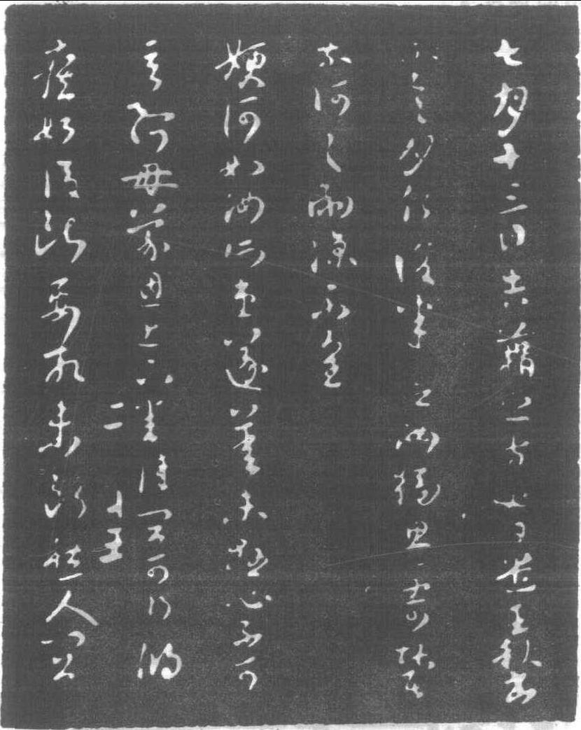 | 释义 | 七月帖傳東晉王廙書。為草書尺牘“七月十三日告籍乏甚近日遣三秋書”云云九行。北宋《淳化閣帖》以其下半六行作為别帖,題曰 〈嫂何如帖〉。廙博學多才,書工章楷,傳锺繇法; 尤善草隸飛白,氣概高古。清王澍稱此帖 “骨法簡古,誠為平南 (王廙) 書。蓋傳模多失。”其論確當。