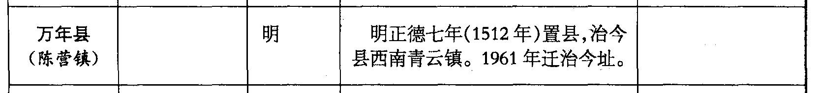 万年县(陈营镇)明明正德七年(1512年)置县,治今县西南青云镇。1961年迁治今址。