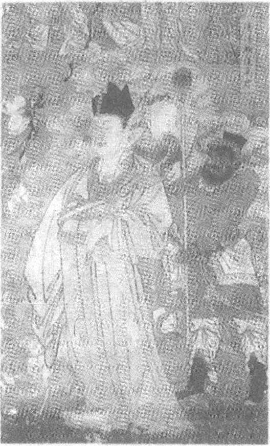 释义 | 三界诸神图(清源妙道真君)壁画 三界诸神图(清源妙道真君)壁画明。纵110厘米,横65厘米。河北省石家庄市西北郊上京村毗卢寺后殿东壁下层南部壁画。传说被宋真宗追封为清源妙道真君的赵昱(又名二郎神),原为道士,隐居四川灌县青城山,隋炀帝时期曾任嘉州太守,死后成神。画面中的清源妙道真君头戴道士帽,身着黄色大袍,腰系玉带,左手持如意,右手牵一白犬,站姿潇洒,神态十分安详。其身后立一武将,手持金瓜,相貌威严,与二郎神形成强烈对比。另一位侍者手持弓箭,年轻的脸上还略带稚气。画面线条活泼,设色明快,给人以清爽之感。 ☚ 三界诸神图(玄天上帝)壁画 三界诸神图(元朝差吏)壁画 ☛ |