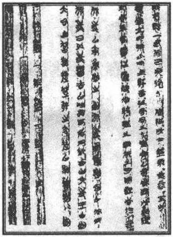 释义 | [三]简帛文字 [三]简帛文字简帛文,是对简文和帛文的合称。简指狭长的竹木片,帛指未经过染色的缣帛等丝织品。简帛文,就是写在竹木片和缣帛上的文字。 图2—49 楚简书 图2—50 楚帛书 战国帛书,至今只有1942年出土于湖南长沙东郊子弹库的一件楚帛书传世 (见图2—50) 。这块长方形丝绢,中间有毛笔墨书的两组文字,一组13行,一组8行,四周每边均有边文和树木、人身兽首和三首一身的神怪人物,是一篇较原始的天文学著作。全篇总计948字,文字体式简略,形态扁平,与楚国简文体貌相同,接近隶书。 简帛文笔形起笔较粗,收笔尖细,因而自汉以来,有人称之为蝌蚪文,或蝌蚪书。 ☚ [二]玉石文字 [四]货币文字 ☛ |