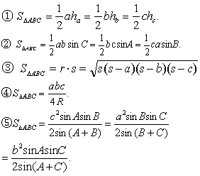 在△ABC中,设∠A,∠B,∠C的对边为a,b,c;a,b,c边上的高分别为ha,hb,hc;s=(a+b+c)/2,r为△ABC内切圆半径,R为△ABC外接圆半径,△ABC的面积为