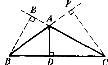 释义 | 三角形的高线 三角形的高线sanjiaoxing degaoxian简称三角形的高,从三角形的一个顶点向它的对边或者对边的延长线引垂线,顶点到垂足间的线段.如图,AD⊥BC于D,AD就是△ABC的BC边上的高线. 三角形有三条高线,它们所在直线交于一点. ☚ 三角形的中线 三角形的角平分线 ☛ |