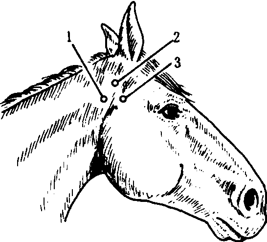 释义 | 下翳风xiayifeng针灸穴名。见《中国兽医针灸学》。马位于寰椎翼前缘突起部内侧缺口处, 左右侧各一穴。以毫针向后内下方刺入7~9厘米。具有镇痛作用。配岩池、颌溪进行电针麻醉可做头颈部手术(图)。 马电针麻醉岩池穴组(体表) |