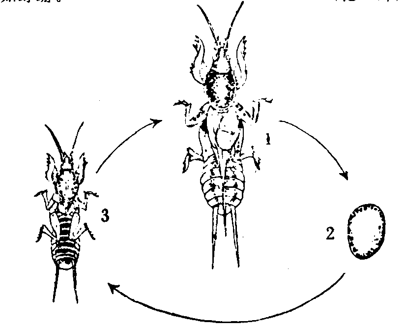 1.成虫(♀) 2.卵 3.若虫