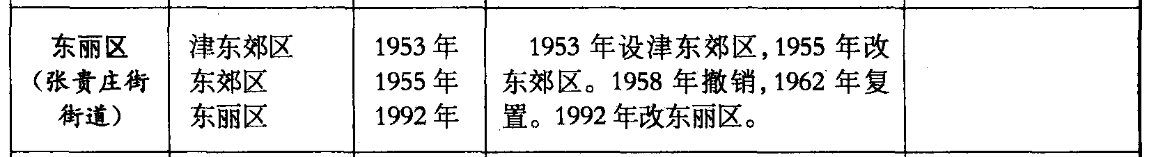 东丽区(张贵庄街街道)津东郊区东郊区东丽区1953年1955年1992年1953年设津东郊区,1955年改东郊区。1958年撤销,1962年复置。1992年改东丽区。