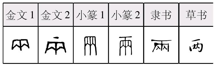 liǎnɡ表意,金文1、小篆1象车衡缚双轭之形(一说象两个相同的物体并列在一起之形);金文2、小篆2在上边加一个装饰性横画,隶定为“兩”。本义表示成双,引申为数词(并列的成对的两个)、成双的事物、双方施行同一行为、不定的较少的数目、重量单位等。元代俗字、《简化字表》简作“两”,字形略有简省。 【辨析】 ❶以“两”作音符构成的形声字一般读liɑnɡ,但声调不同。liànɡ:辆∣liǎnɡ:俩、魉。 ❷“两(兩)”可作类推简化偏旁使用,如:俩(倆)、辆(輛)、满(滿)。 ❸两/二 这两个字用法不同:a.上古时代这两个字不同义,“二”用于基数和序数,“两”只用于成双成对的事物。b.汉代以后这两个字都表示数字,但仍有区别。一般量词前用“两”,不用“二”,如“两次、两个人、两条路、两回事”。c.在数词“十”前,只能用“二”,如“二十”“二十三”。d.序数、分数、小数、基数的个位数(后面不带量词)都用“二”,如“第二、二月、十分之二、十五点二、三十二”。两 兩; 金 篆 隶liǎng【析形】会意字。在金文字形“ ”字上增一横,小篆字形又使横画与下部相连。 【释义】本义为二,表示并列的成对的两个。如[两全其美]、[两败俱伤]、[两相情愿]、[势不两立]。 【shape analysis】It is the associative character.In Bronze Inscriptions it looks like the car that has formed two lines. 【original meaning】The pair side by side. |