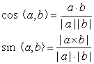 指两个非零向量a与b的起点重合时所成的角,记为 (0≤≤π).这与平面几何中定义的角是完全一致的.当a,b同向时,=0;当a,b反向时, =π;当=π/2时,称a与b垂直,记为a⊥b.两个非零向量a与b的夹角可以用a与b的数量积表示,也可以用a与b的向量积表示