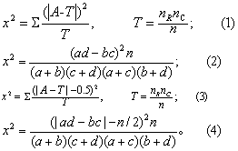 释义 | 两样本率比较 两样本率比较两个样本率作比较的目的在于推断两个样本各自代表的两总体率是否相等。常用的方法有x2检验、u检验及对数似然比检验,也可用平方根纸作检验。当样本含量甚小时宜用四格表的确切概率法。 四格表x2检验可选用式(1)~(4)之一计算统计量x2值。 式(1)为计算x2值的通用公式;式(2)为四格表x2检验的专用公式,直接用实际频数计算,较为简便;式(3)、(4)分别为对应于式(1)、(2)的连续性校正(见“样本率与总体率比较”)公式。四格表x2的校正问题,统计学家有不同的意见。一般认为总例数n较少,理论频数T较小时校正的意义更大,但若n和T过小则不宜用x2检验。至于n、T的大小界限,有人提出T<5应校正,所有T≥7.5可不校正;有人提出T<5又n<40,或有T<1,或n<20,宜用确切概率计算法(见条目“四格表的确切概率法”),可作参考,但不必过分拘泥于截然界限。有人认为所有四格表x2检验宜一律校正。但有人认为不校正,x2值偏高,而校正后有时偏低,可能矫枉过正。故当观察统计量x2值在界值附近时,最好改用四格表的确切概率法。 四格表的自由度v=1,算得x2值后,查x2界值表得P值,按所取检验水准作出推断结论。 例1 就表1资料,比较单用甘磷酰芥(单纯化疗组)与复合使用争光霉素、环磷酰胺等药(复合化疗组)对淋巴系统肿瘤的疗效,问两组患者的完全缓解率有无差别? H0: π1=π2,H1: π1≠π2。 α=0.05。 表1 两化疗组的缓解率比较