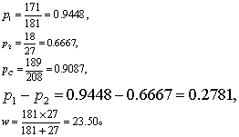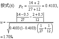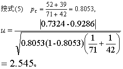H0: π1=π2 H1: π1≠π2。 α=0.05。 查x2界值表,v=1,0.025>P>0.01,按α=0.05水准拒绝H0,接受H1,可认为两组大白鼠的生癌率不同,鼻注+B12组较高。 u检验 当自由度为1时,u2α=x2α,故u检验与x2检验等价。u检验可选用式(5)或式(6)计算u值。式(5)与式(1)、(2)相应,式(6)与式(3)、(4)相应。 例3 例题同例1资料。H0、H1及α同例1。 查u界值表,得0.10>P>0.05,结论同例1。 例4 例题同例2资料。 H0、H1及α同例2。 查u界值表,得0.02>P>0.01,结论同例2。 对数似然比检验 可选用式(7)或式(8)计算G值。G=2[∑Aln A-∑nRln nR-∑nCln nC+nlnn],(7)G=4.60517[∑A lg A-∑nR lgnR-∑nC lg nC+nlgn]。(8) 式中A、nR、nC及n的意义同式(1)或式(3)。若作连续性校正,则对四格表实际频数中: ad与bc的乘积之较大者各减0.5,较小者各加0.5。如ad>bc,则∑A ln A=(a-0.5) ln (a-0.5)+(d-0.5) ln (d-0.5)+(b+0.5)ln(b+0.5)+(c+0.5)ln(c+0.5),反之亦然。当样本含量较大时,统计量G近于x2分布,故算得G值后查自由度为1的x2界值表得P值,按所取检验水准作出推断结论。 例5 例题同例2资料。 H0、H1及a同例2。 按表2数据,用式(8): G=4.60517[52]g 52+19 lg 19+39 lg 39+3 lg 3-71 lg 71 - 42 lg 42-91 lg 91-22 lg 22+113 lg 113] =7.31。 查x2界值表,v=1,0.01>P>0.005。结论同例2。 四格表资料的合并 为了充分利用同类资料的信息,可将几个四格表资料合并分析。如果实验条件完全一致,各表中相应的率很相近,趋势亦相同,把几个四格表的相应数据合为一个四格表进行统计分析是合理的。但如同一实验分批操作,或同一调查分地区、分阶段进行,则条件不尽相同,就不宜将各四格表的相应数据直接相加,而须采用下列方法。 合并x2值法 若各个四格表的总例数n相差不大,每一四格表中相应的两样本率p1-p2之差符号一致,即趋势相同。则可按x2的可加性原理: x2之和本身亦呈x2分布,将各个四格表的x2值(用未经校正公式计算的x2值)、自由度分别相加,然后以合计的x2值与自由度查x2界值表得P值,按所取检验水准作出推断结论。 例6 用甲型25号止血粉做狗股动脉横断止血试验,共进行六次,结果见表3,问加药压迫3分钟和5分钟的止血成功率间有无差别? 表3 压迫3分钟组和5分钟组的止血成功例数