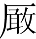 严yán形容词,凶恶、凶狠,比通常的严厉义语意更重。《永乐大典戏文三种》《小孙屠》十一:“当初只道文章贵,到此方知狱吏~。”此孙必达受刑后朱令史所念的下场诗,意谓你今日才知道我这做狱吏的凶狠厉害吧。《萧淑兰》剧一:“怕甚么当家尊嫂恶,恩养劣兄~。”恶、严互文。《乐府群珠》卷二曾瑞卿小令《四块玉·嘲妓家》:“奴非不爱双生俊,孛老~,坡撇哏,钱上紧。”孛老,王八。坡撇,鸨母。“哏”同“狠”,与“严”亦互文。《太和正音谱》王和卿《文如锦》套:“读书人窘,贩茶客富,爱钱娘~。”义同上。 严 严yán❶威严。《小雅·六月》三章:“有严有翼,共武之服。”翼,恭谨。服,事。武之服,即武事,战争。共武之服,即共同承担作战任务。毛《传》:“严,威严也。”朱熹《集传》:“言将帅皆严敬以恭武事也。”《大雅·常武》三章:“赫赫业业,有严天子。”毛《传》:“赫赫然盛也,业业然动也。严然而威。”郑《笺》:“王之行军,其貌赫赫然,业业然,有尊严于天子之威。” ❷敬慎谨严。《商颂·殷武》四章:“天命降监,下民有严。”毛《传》:“严,敬也。”郑《笺》:“降,下。”陈奂《传疏》:“严,读为俨。《尔雅》:‘俨,敬也。’《荀子·儒效篇》:“严严乎其能敬己也。’” ☚ 孝孙 两 ☛ 严读音·ian(ˊ),为ian韵目,属an—ian—uan—üan韵部。语切,平,严韵。 ❶严厉;严格。 ❷引申为威严。 ❸急;紧急。 ❹尊敬。 ❺猛烈。 ❻厉害。 ❼严密。 上一条: 櫩 下一条: 嚴 严姓。 严〔yan〕 严冬 〔yan dong〕 ngangxnongt. 严寒 〔yan han〕 nongt guat。 严嚴《广韵》語��·嚴;ggán‖yán寒:水~zuǐ ggán(水很冷)。《正字通》:“严,寒气凛冽。”唐·韩愈《杏花》诗:“冬寒不嚴地恒泄,陽氣發亂無全功。”宋·杨万里《望横山塔》诗:“水面生風分外嚴,竹根剩雪更新添。” 严 <吴堡>严实: 门闭~,外起刮起风叻丨我把周围纸糊~,我看你哪达儿瞧牡丹。 严嚴ㄧㄢˊyán二2495①动砌。吴语。浙江宁波。俞信芳《方言可以证古》:「《太平广记・邓元佐》:『汝乃~一土塌,上布软草。』俞注:~,圬,读如泥。鄞言砌墙、起灶读作~。」②动淬。闽语。福建厦门〖 〗。~钢。③动跟。客话。广东翁源。《翁源儿歌》:「月头一出东边来~到穷爷又穷𡟓。」④形寒冷;冰凉。闽语。福建厦门〖 〗。水~。福建仙游〖 〗。⑤形稳;一定。西南官话。湖北武汉〖 〗。你莫拿~了‖十拿九~。⑥副用于「不」或「有」后,表示程度浅或次数少。湘语。湖南长沙〖 〗。不~放心‖他在会上冇~讲话。   严〈隐〉旧时江苏渔业指数目三。参“流、杀、严、幌、摸、搭、条、敲、休、支花”。 严嚴yán❶(仪容)庄重;(态度)认真 △ 威~|~肃。 ❷(做事情)严格,不放松 △ ~守纪律。 ❸厉害;程度深 △ ~寒|~冬。 ❹紧密 △ 把门关~。 ❺姓。 严嚴❶严密;没有空隙:~紧︱~谨︱嘴~︱谨~︱~丝合缝︱壁垒森~。 ❷严格;严厉;严肃:~正︱~整︱~明︱~守︱~防︱~禁︱~重︱~峻︱~酷︱~词︱~办︱~刑︱从~︱谨~︱尊~︱庄~︱威~︱森~︱~惩不贷(dai)丨~刑峻法︱~阵以待︱赏罚~明︱义正词~。 ❸厉害,指程度深:~冬︱~寒。 ❹军事上的紧急状态或非常情况:戒~︱解~。 ❺指父亲:家~。 严yán❶ 严密,没有空隙:嘴严︱盖子很严︱严守秘密。 ❷ 严厉,不放松:严禁︱严守规矩︱要求很严。 ❸ 仪态庄重,态度认真:庄严︱严正。 ❹ 厉害,程度深:严刑︱严寒。 ❺ 指父亲:家严。 ❻ 姓。 严yán1.严密; 紧密。例如: ❶ 这孩子嘴严,他是不会对人讲这事的。 ❷ 要把被子盖严了,免得着凉。 ❸ 多老大把眼闭得更严了些,……(老舍《正红旗下》) ❹ 实在包得太严了,简直让人看不出来! ❺ 担架上躺着一个人,一床灰色的旧棉毯严严地盖在上面。 ❻ 大门成天关得严严的。 2.严厉; 严格。形容制度、规矩、要求、办法、禁令、做事、待人和监视、警戒、督促、检查、管理等。例如: ❼ 学院是军事组织,制度很严。 ❽ 我们的组织完全破坏了,敌人的监视很严,…… (茅盾《子夜》) ❾ 写东西,选材要严,开掘要深。 ❿ 爹待他太严。 ⓫ 他督责功课是严的,……(叶圣陶《朱佩弦先生》) ⓬ 我们这套办法,说严嘛,严得不得了。 ⓭ 老张的学堂,有最严的三道禁令: ……(老舍《老张的哲学》) ⓮ 沿着铁路,到处有敌人的据点,警戒得很严。 ⓯ 你查得不严,就让他钻了空子。 严yán❶尊敬,恭谨。《离骚》:“汤禹严而求合兮,挚咎繇而能调。”王逸注:“严,敬也。”《礼记·学记》:“凡学之道,严师为难。”郑玄注:“严,尊敬也。” ❷ 当作“庄”,避汉明帝刘庄讳改。庄严,威严。《天问》:“能流厥严。” ❸ 指国家与帝王的尊严、威严。《诗经·小雅·六月》:“有严有翼,共武之服。”毛传:“严,威严也。”《天问》:“厥严不奉,帝何求?”王逸注:“言楚王惑信谗佞,其威严当日堕,不可复奉成,虽从天帝求福,神无如之何?” ❹ 急,赶紧。《孟子·公孙丑下》:“充虞请曰:‘前日不知虞之不肖,使虞敦匠事。严,虞不敢请。’”朱熹集注:“严,急也。”《九思 ·逢尤》:“严载驾兮出戏游。” 严yan严办 严惩 严词 严处1 严打2 严冬 严防 严格 严寒严紧 严谨 严禁 严峻 严控3 严令 严密 严明 严师 严说严守 严肃 严刑 严整 严正 严重 从严 家严4 解严 戒严谨严 森严 威严 庄严 嘴严 尊严 严惩不贷 严防死守 严丝合缝 严刑峻法 严阵以待 壁垒森严 义正词严 严师出高