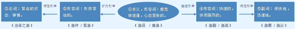 释义 | ![]() ❶ 迅速,又快又猛: ~行军|~风暴雨|水流湍~|外面炮声甚~,他却一直很沉着。 缓 huǎn ~步徐行|过桥时车辆~行|微风~~地吹着。 慢 màn 且~|这是~车|这是你们点的菜,二位请~用。 ❷ 急躁;着急;发怒: 性子太~|你别~,大家商量好再动手|没说上三句话,他就~了。 慢 màn 他的性子就是这么~,你说什么他也急不起来。 ★ “急”还表示使人急,如说“这事真急人”、“实在急死我了”。 使着急。一般不带动态助词。不能重叠。常作带宾、带补谓语。 你~什么?慢慢来嘛!|火车快要开了,他还没来,真~死人! ❶速度快、来势猛的。 a.作谓语。 天越来越黑,风更~了。 b.作定语。 夏天里常常是一场~雨刚停住,太阳马上就出来了。 c.作补语,常用“得”。 他走得很~,连牙刷都忘了带|这片棉花长得太~了,得赶快打顶枝。 ❷情势紧迫、严重。常受程度副词“很”的修饰。 a.作谓语。 事情很~,别再犹豫了!|我的事并不~。 b.作定语。 今天玉芳有~事,她不来了。 c.作补语,常用“得”。 不是我催你,是上面要得很~。 ❸急躁,着急,不耐烦,不冷静。常与“脾气”“性情”等词语搭配。常作谓语。 当老师的人,脾气不能~|这个人什么都好,就是性情太~。 紧急严重的事情。可作宾语。 你先把这点钱拿去救救~吧! 【反】 〈形〉❶缓 ❸慢 【词语】 急电 急风暴雨 急公好义 急功近利 急件 急进 急救 急剧 急流 急起直追 急速 急人之难 急先锋 急行军 急需 急用 急于 急诊 急中生智 急骤 急转直下 字源解说 及,既是声旁也是形旁,表示追赶、捉拿人犯。急,篆文 ![]() ![]() ![]() ![]() ![]() ![]() 附 文言版《説文解字》:急,褊也。从心,及聲。 附 白话版《说文解字》:急,偏狭的心态。字形采用“心”作边旁,采用“及”作声旁。 引申线索 ![]() 【字族索引】 刍 急 【同音字】 jí |