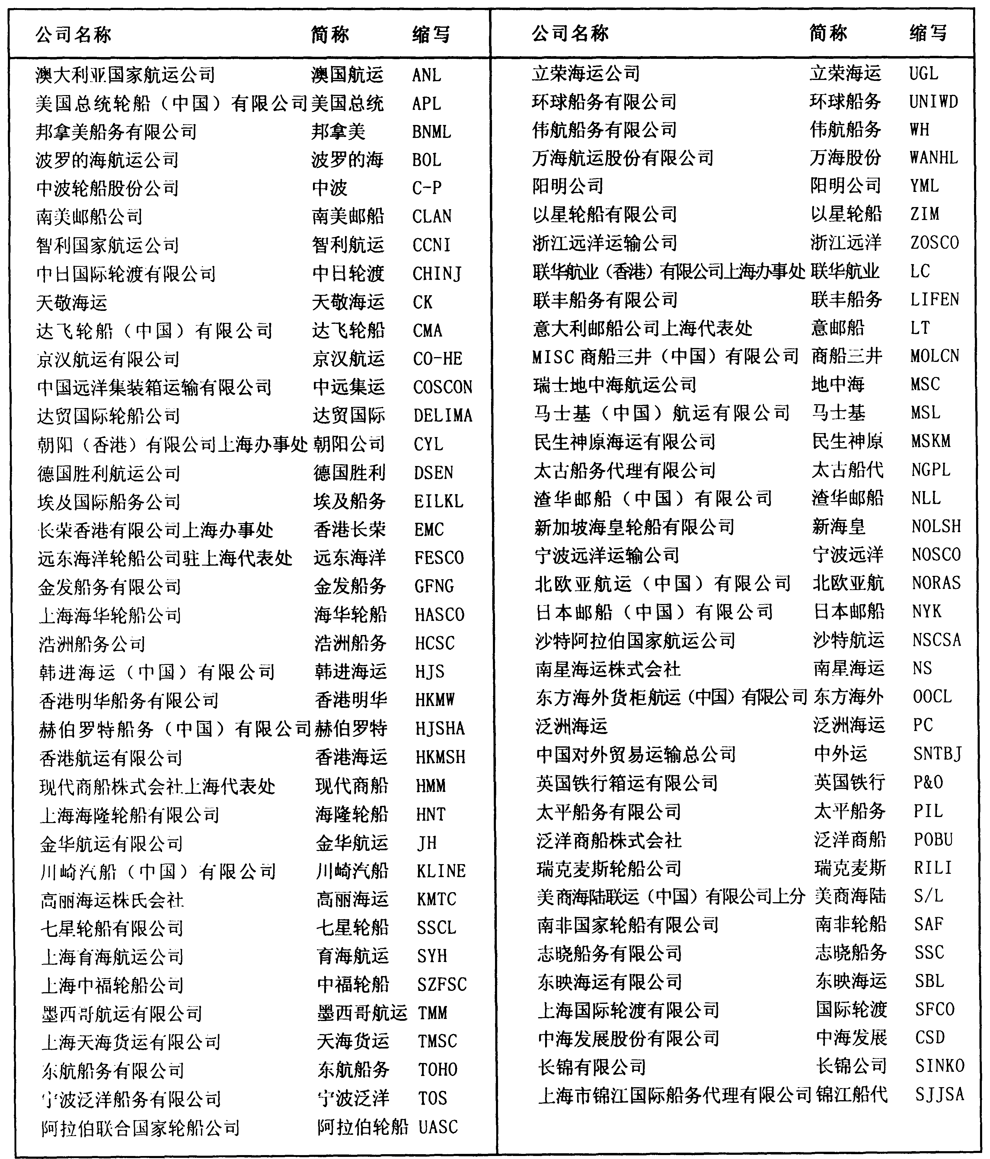 中外船舶公司简称与缩写一览表
