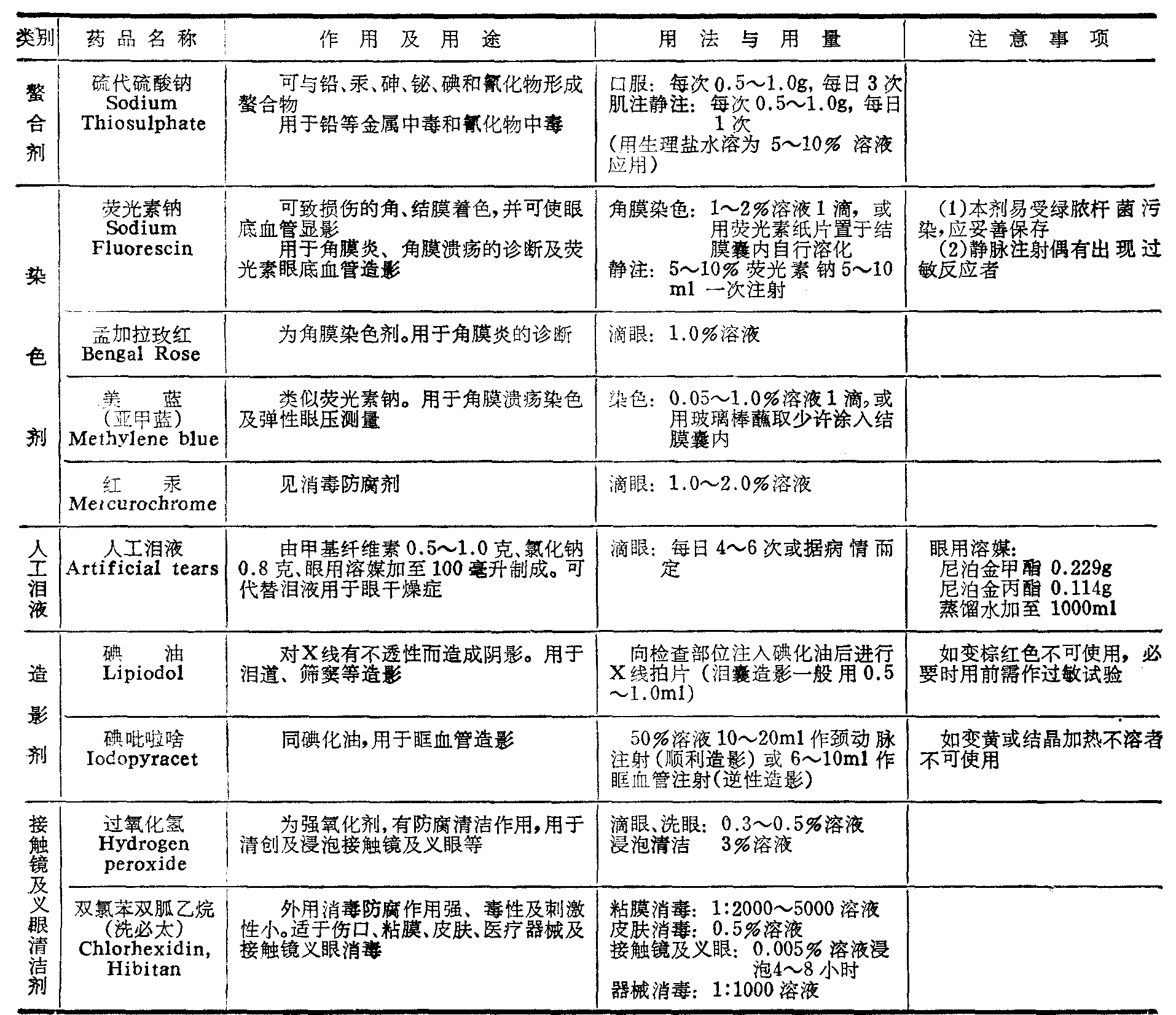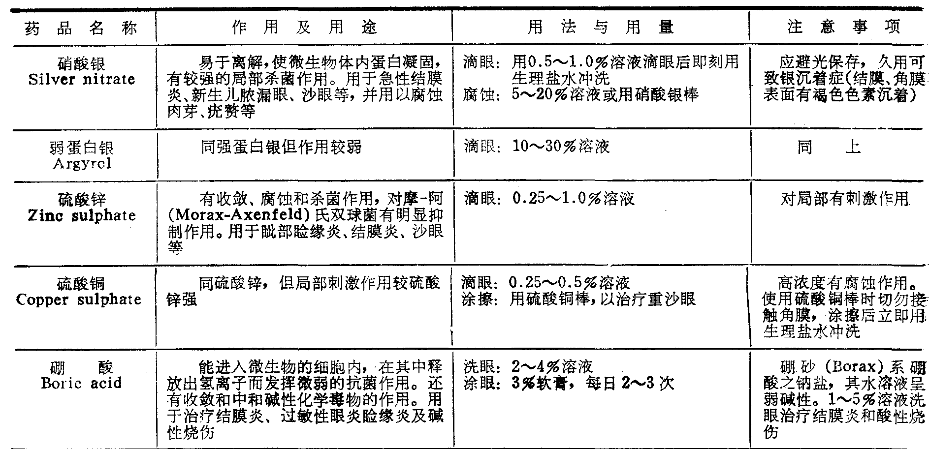 中国医学百科全书︱附录3 眼科常用药物表 附录3 眼科常用药物表 收敛腐蚀剂Astringents, Caustics