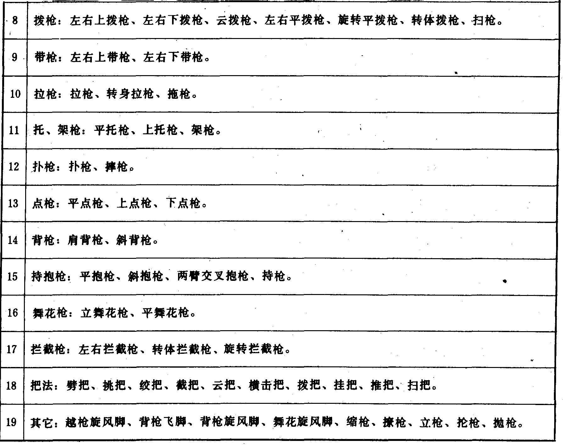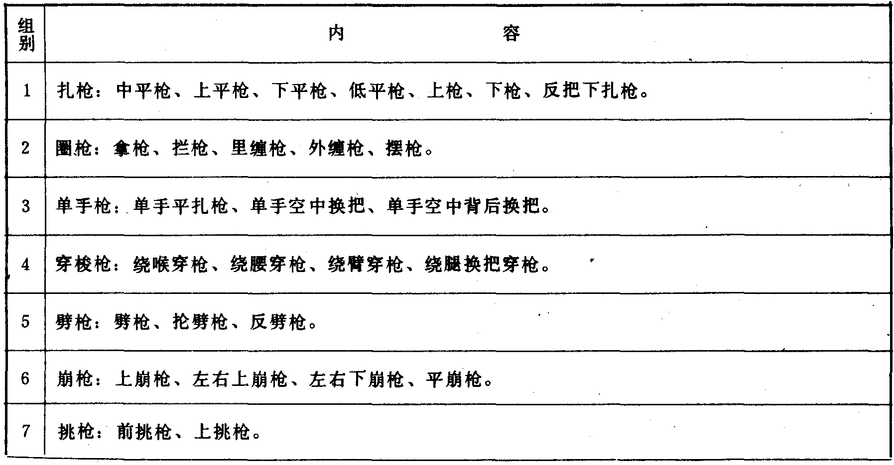 枪术主要动作组别表