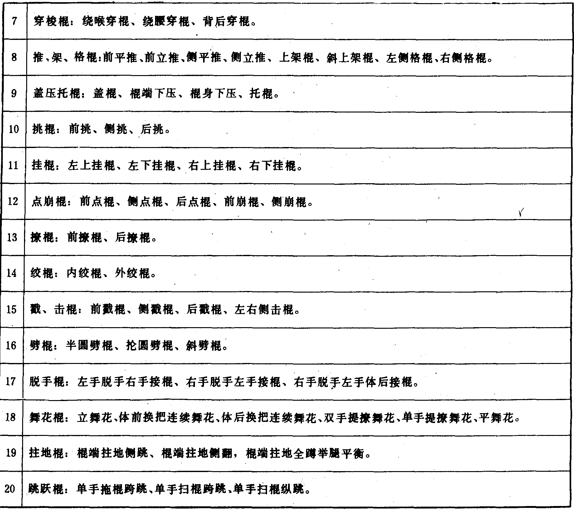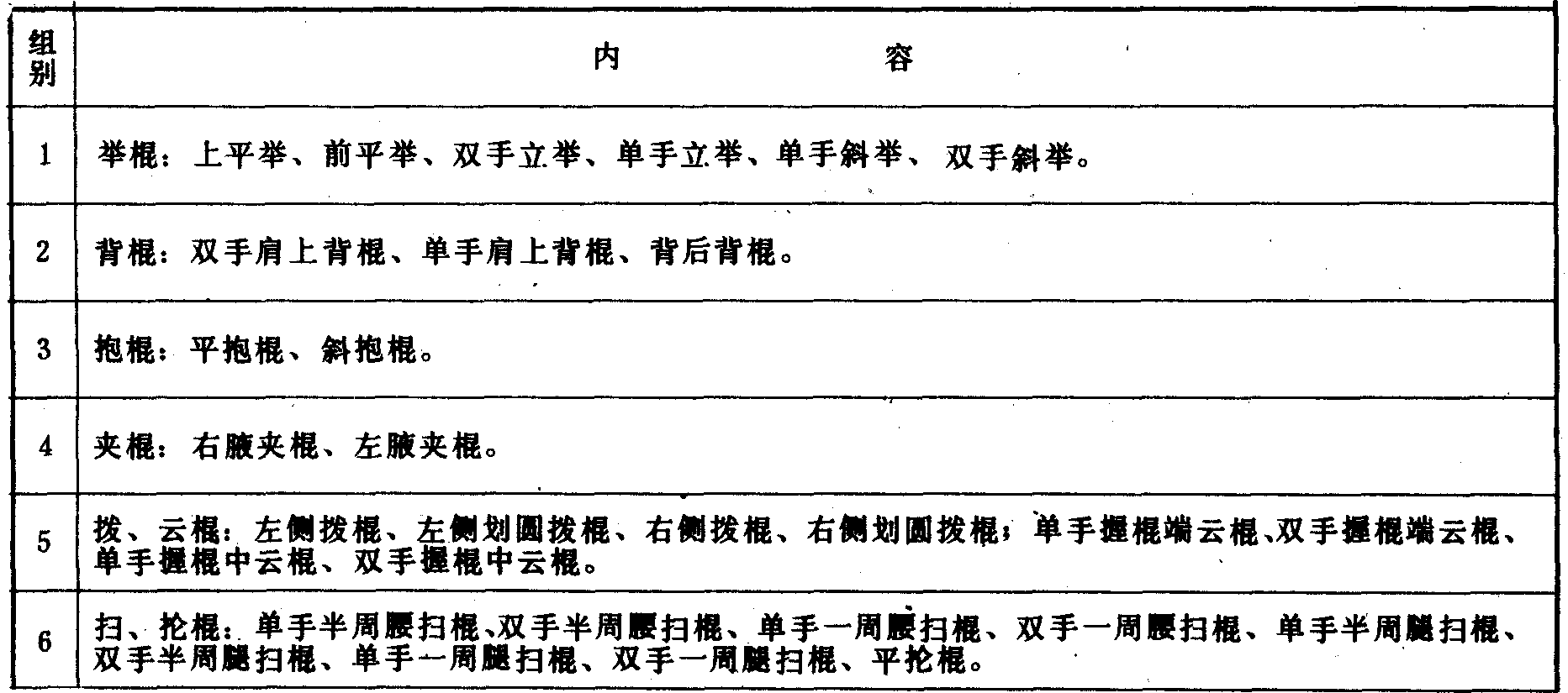 棍术主要动作组别表