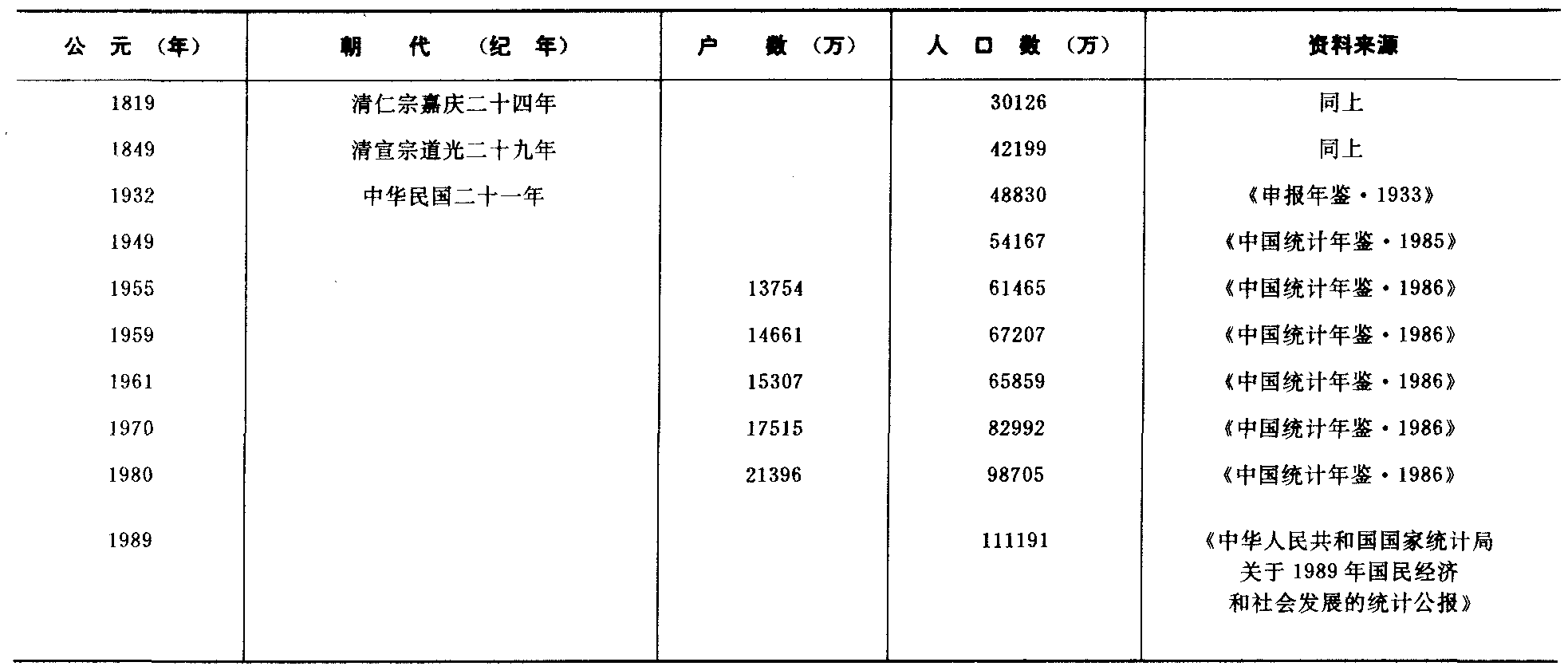注:1.本表全国和分地区数字是根据1988年人口变动情况抽样调查推算。其中,上海、江苏、浙江、安徽、广西、西藏、宁夏、新疆年末总人口数和人口自然增长率数为公安机关户籍统计数。2.全国总人口包括现役军人数,各地区均不包括。3.台湾省资料暂缺。11—2 中国历代人口 单位:万人