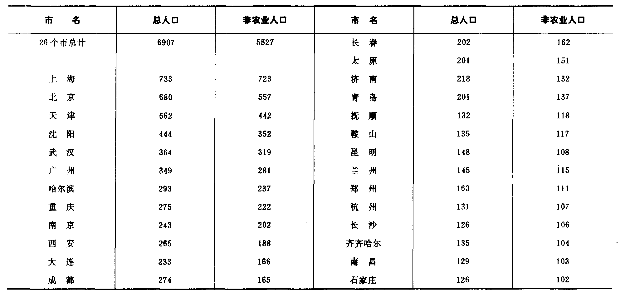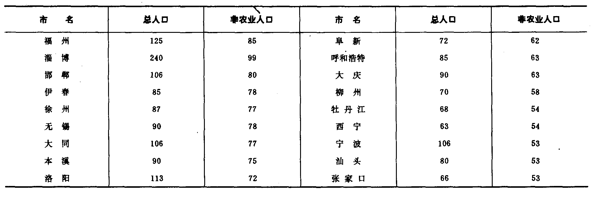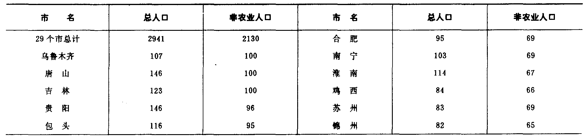 11—7 1988年底50—100万人口市的人口数 (按非农业人口划分) 单位:万人