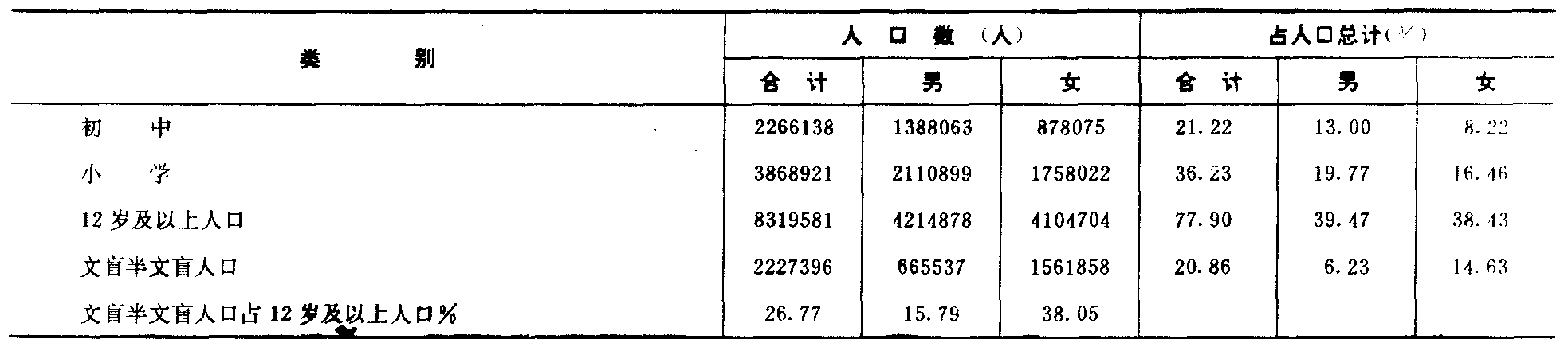 11—9 人口文化程度和文盲半文盲状况 (1987年1%人口抽样调查资料)