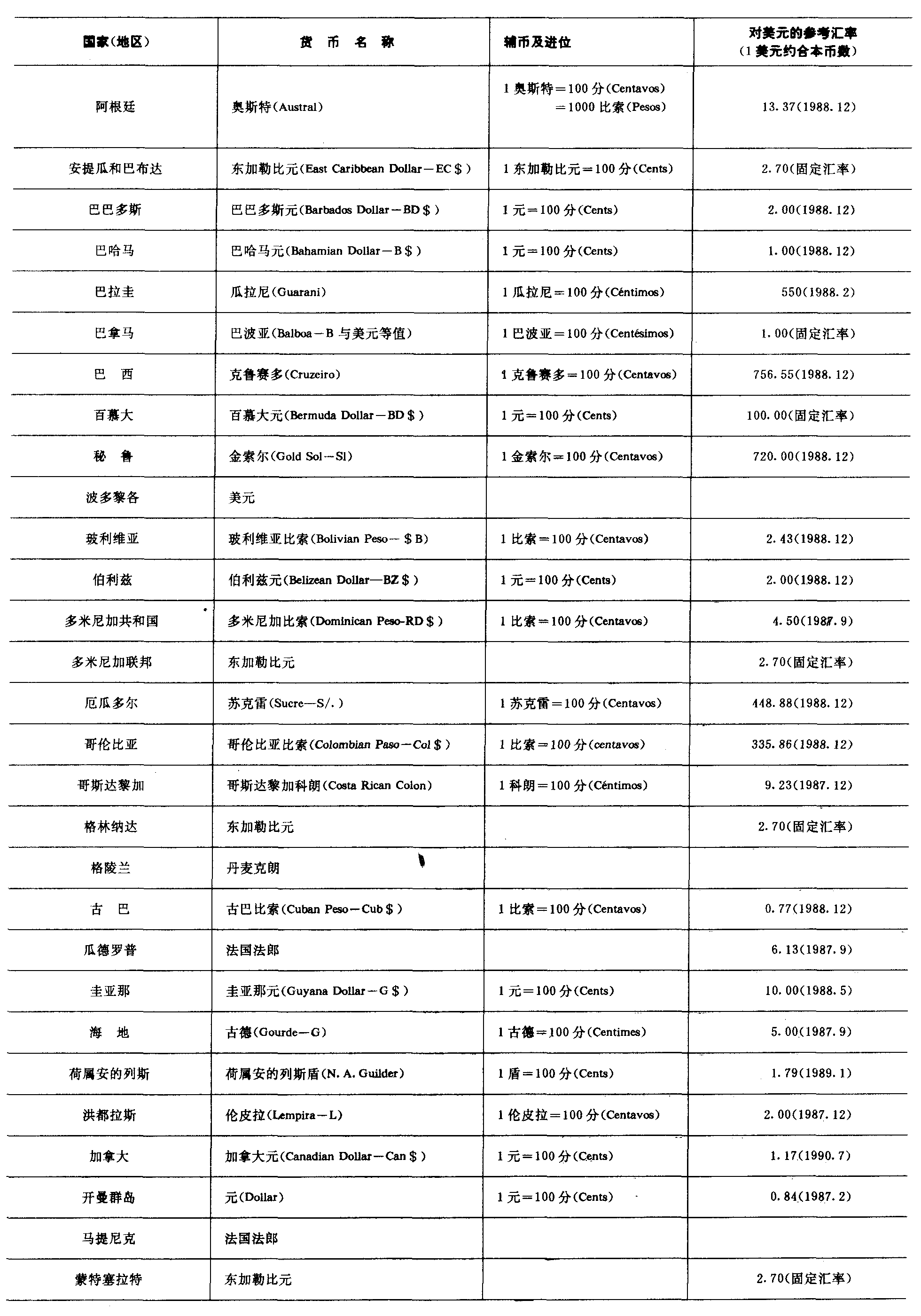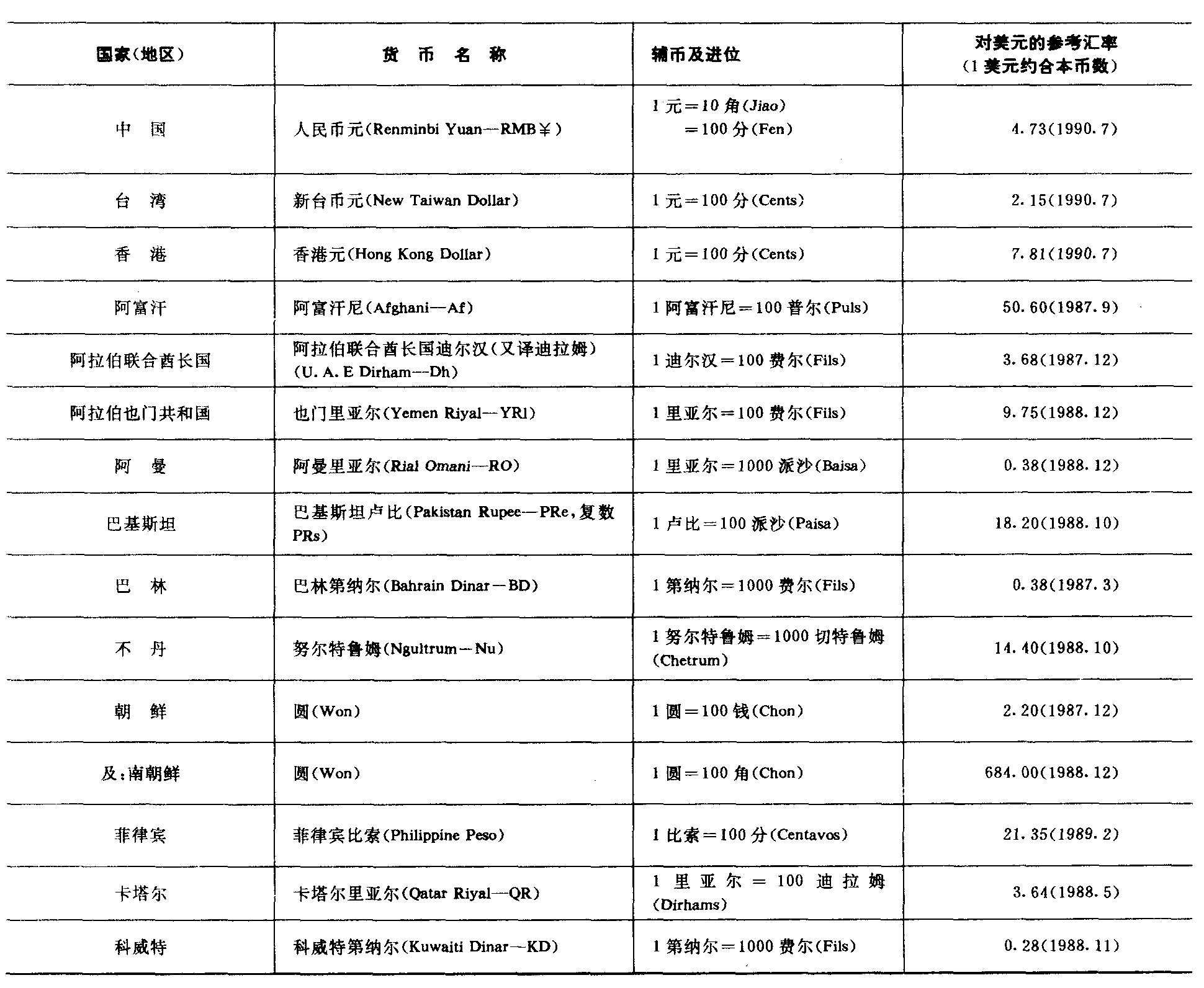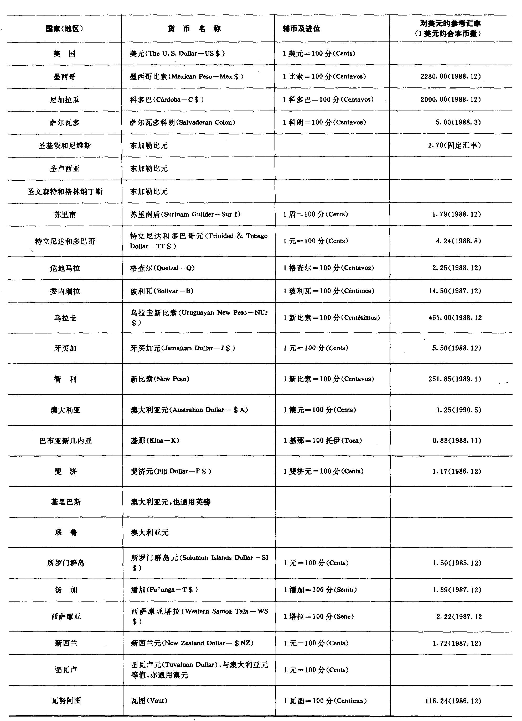 释义 | 中国百科大辞典︱6. 世界各国和地区本位币名一览表 6. 世界各国和地区本位币名一览表