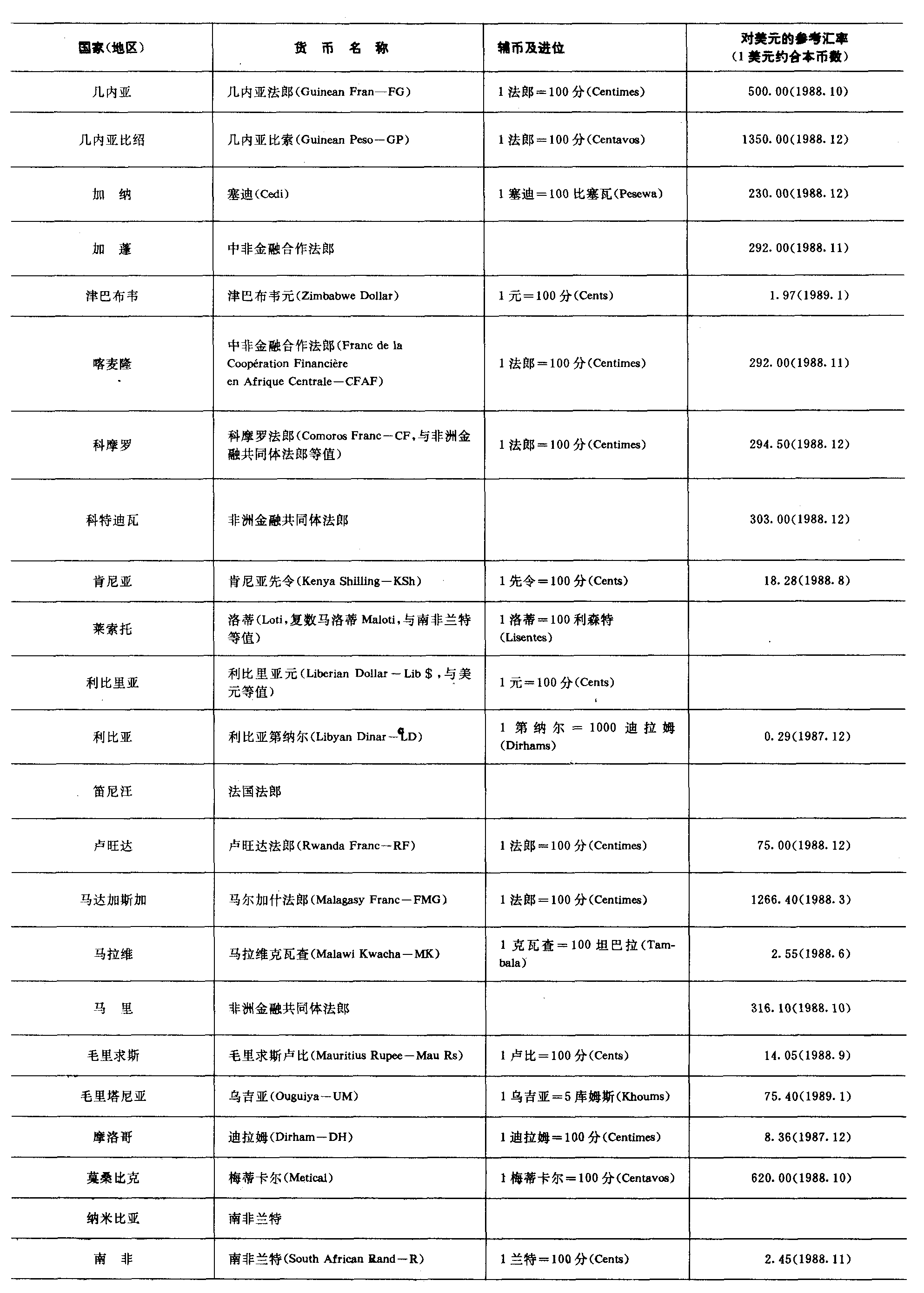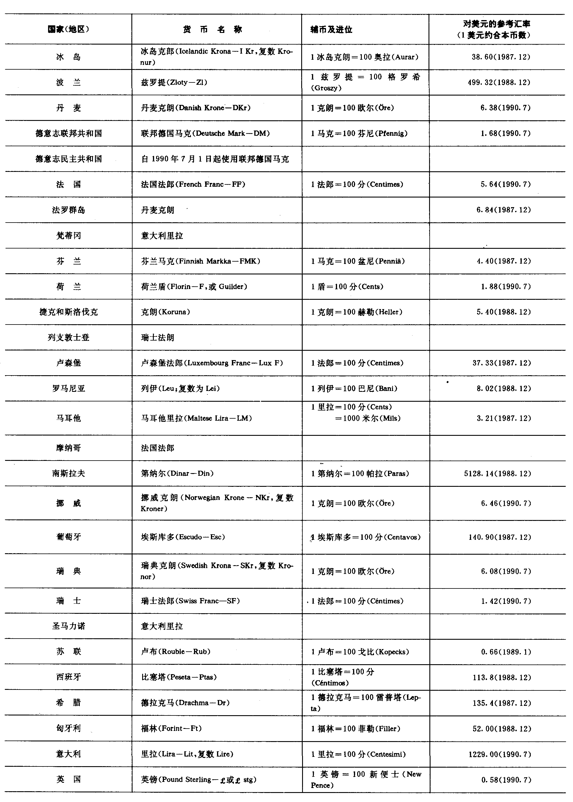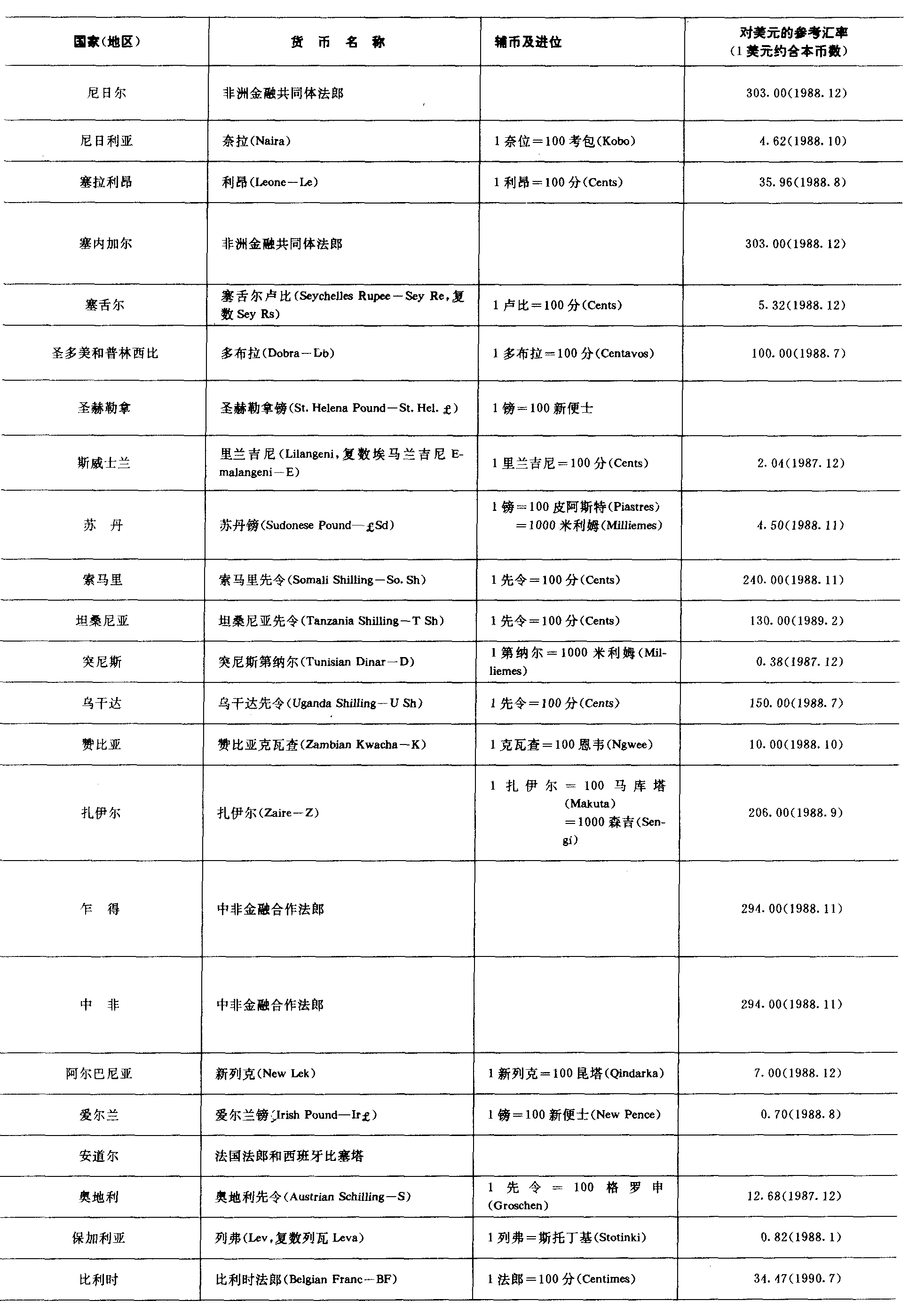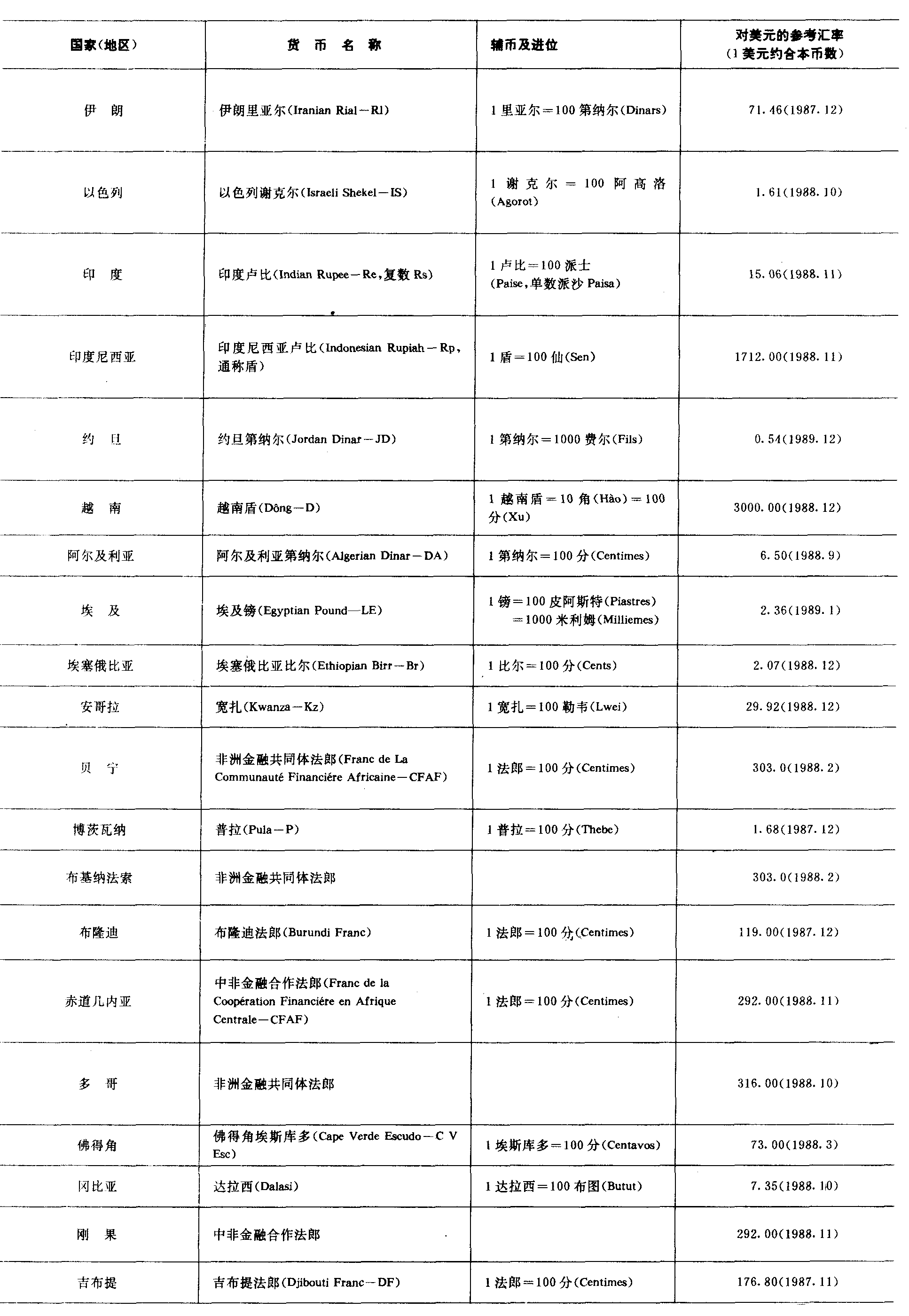 释义 | 中国百科大辞典︱6. 世界各国和地区本位币名一览表 6. 世界各国和地区本位币名一览表