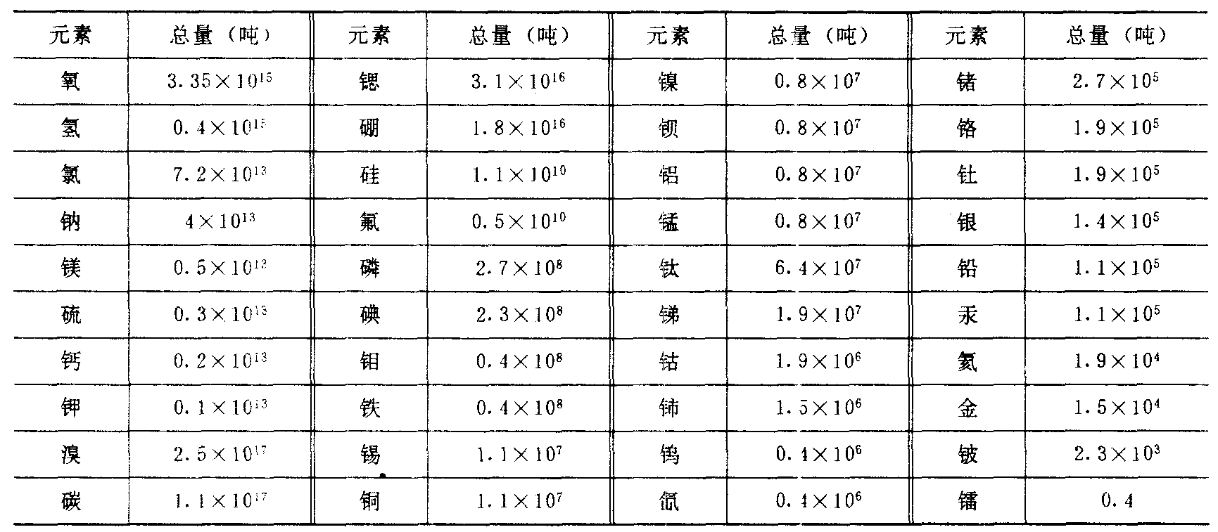 我国近海四海区(渤、黄、东、南)主要元素含量表