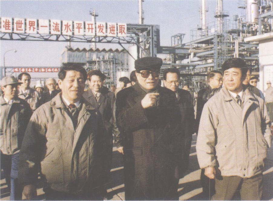 释义 | 中国石化天津石油化工公司1983年成立。是国家特大型石油化工化纤企业。隶属于中国石化集团公司,下属有9个生产厂、10余个设计院、科研所等二级单位。原油加工能力600万吨/年,涤纶聚酯生产能力10万吨/年。截至1998年底,累计实现利税83.52亿元,工业总产值350.39亿元,完成销售收入592.06亿元,出口创汇1.3亿美元,公司资产总额从15.13亿元增加到78.42亿元。1993年,天津石化公司拉开了第二次大发展的帷幕,到2000年工程全部建成投产后,聚酯生产能力达30万吨/年,可增加工业产值38亿元/年。公司主要产品有:汽油、煤油、柴油、石油沥青、聚丙烯、聚醚多元醇、聚酯切片、涤纶短丝、长丝等140个品种规格。累计完成科研项目228项,获得中国石化集团公司科技进步奖68项、天津市科技进步奖11项,获得国家专利37项。创国优产品6个,省部优产品35个,其中获国家金质奖的“天仙牌”高强低伸型涤纶短丝质量一直处于国内领先地位。 1994年12月,江泽民总书记到天津石化公司视察 1997年9月3日,盛华仁、李盛霖等出席天津石化公司20万吨聚酯二阶段工程奠基仪式 化纤生产车间一角 天津石化公司生产装置区夜景 |
