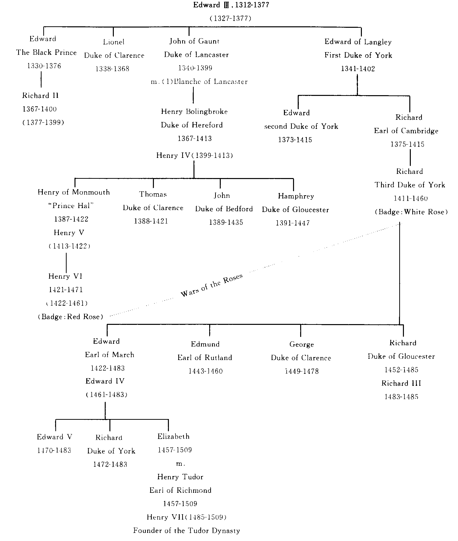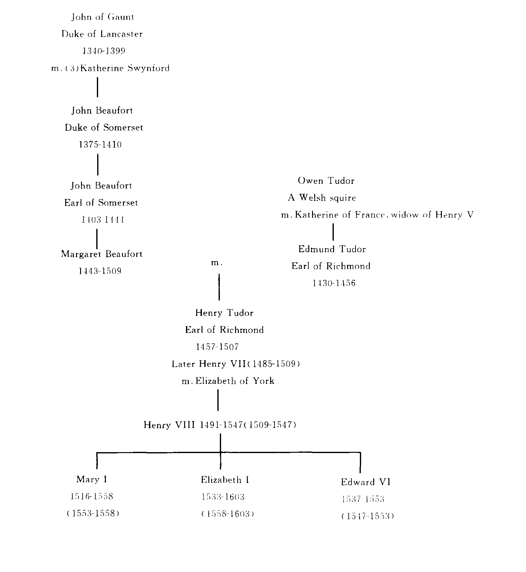 3. THE BLOOD AND MATRIMONIAL LINKS BETWEEN THE TUDORS AND THE HOUSES OF LANCASTER AND YORK 都铎家族与兰开斯特和约克两个王室之间的血缘和婚姻联系