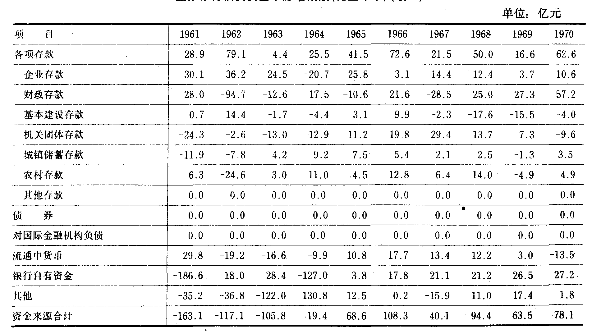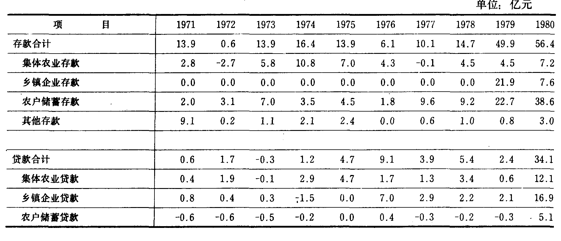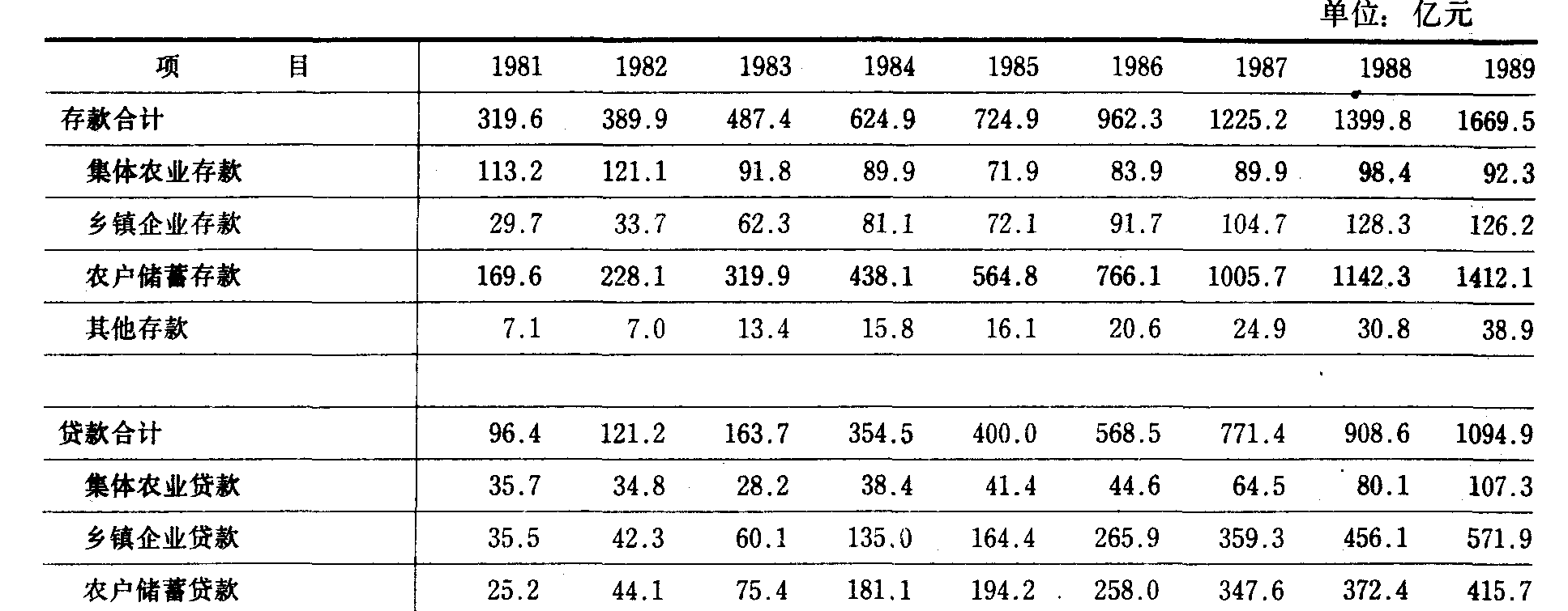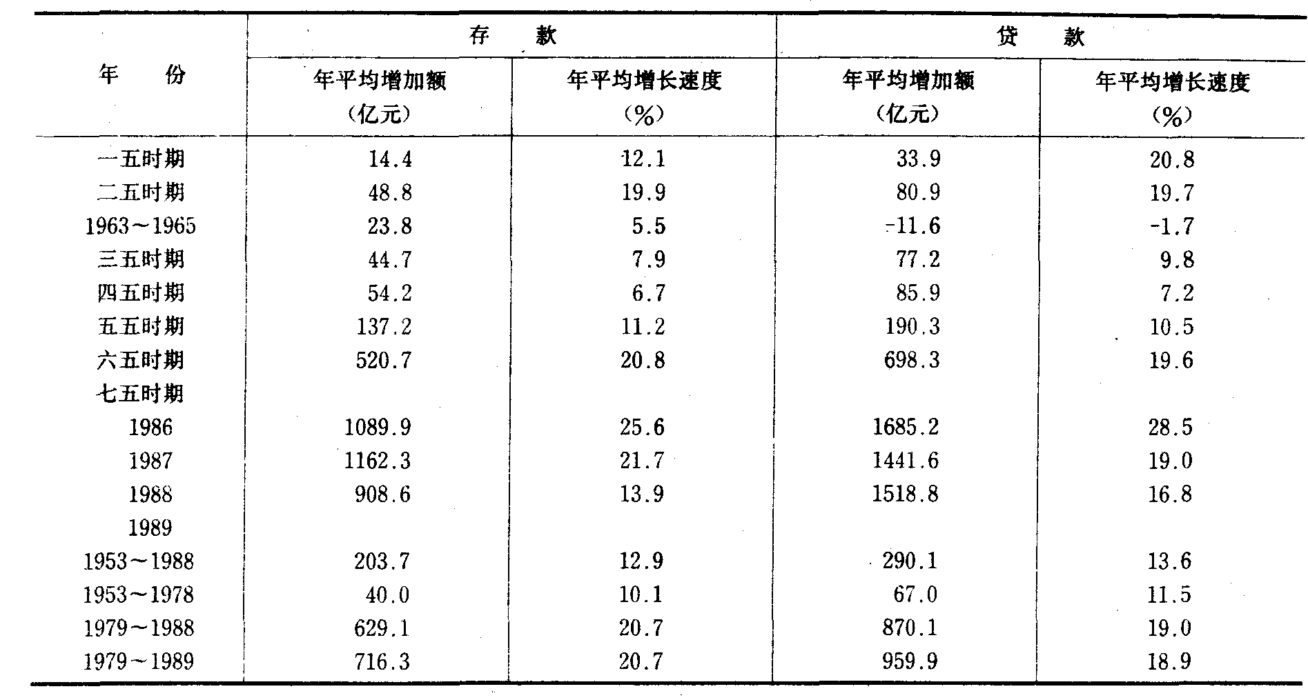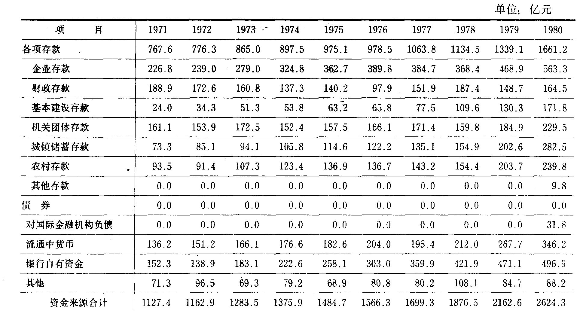 注:1981年后数字含建设银行,1987年后数字含交通银行、中信实业银行(资金运用表同)。 国家银行信贷资金运用(年末余额)
