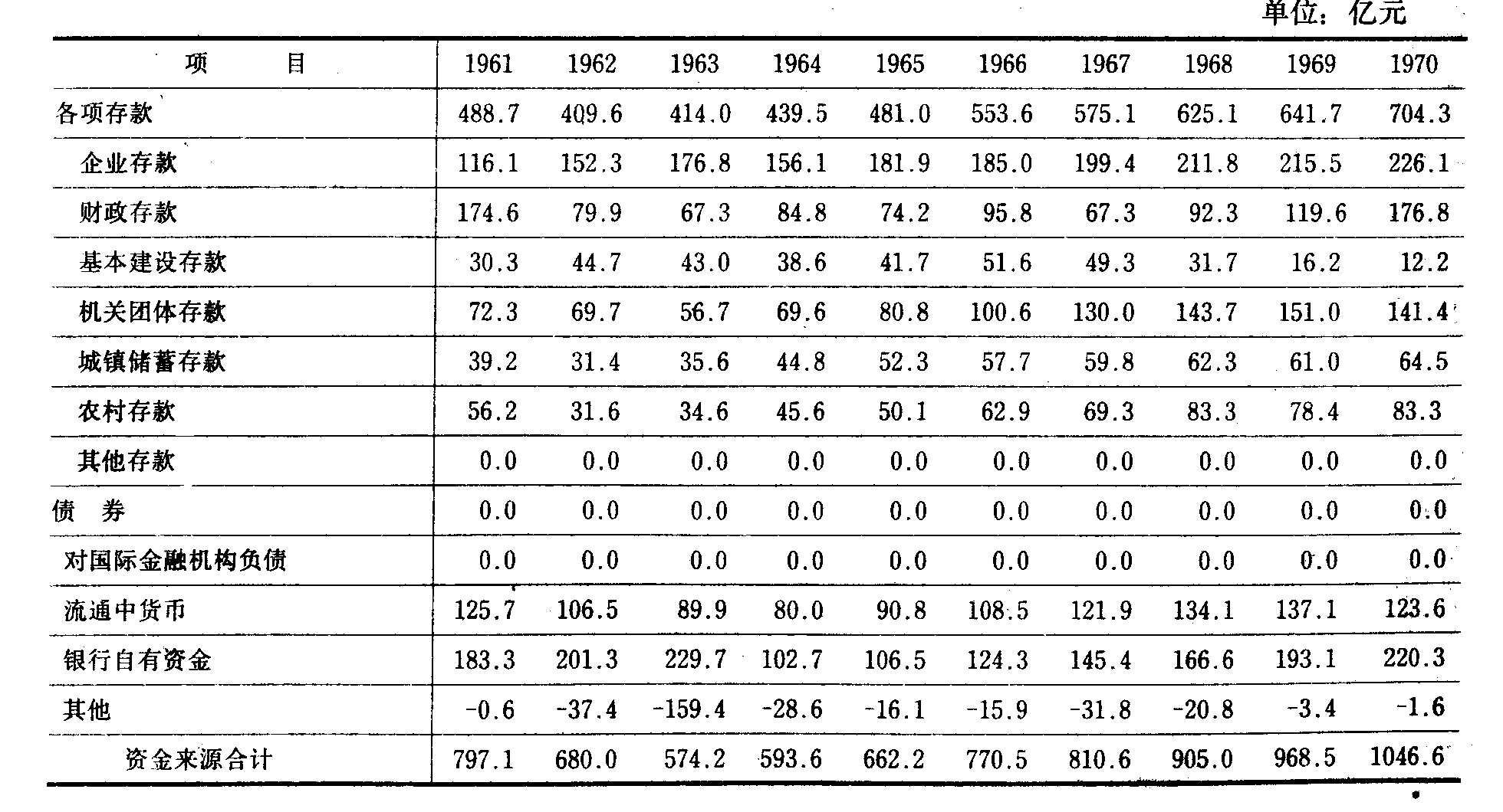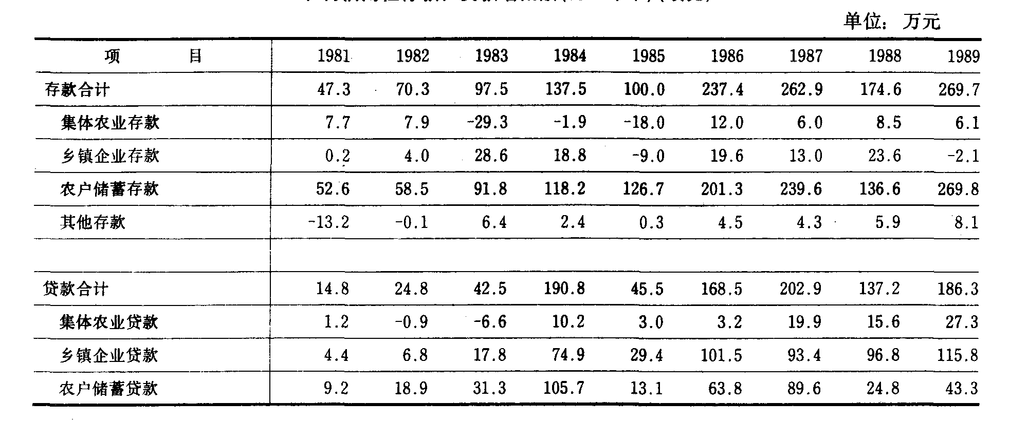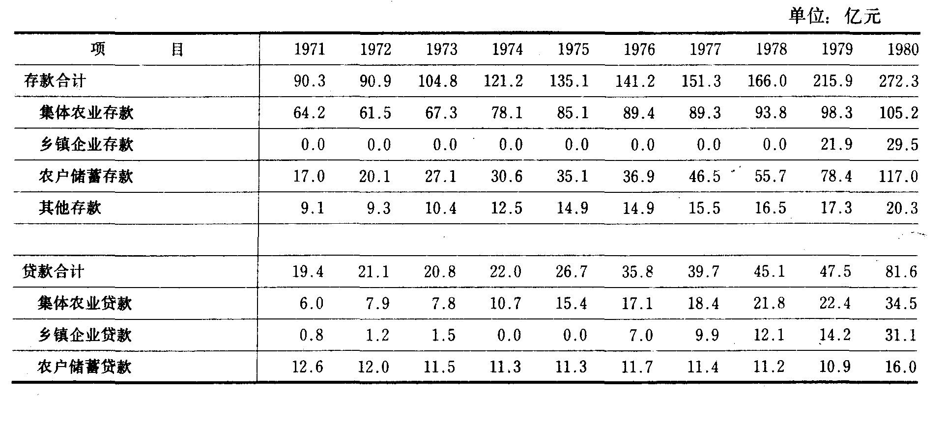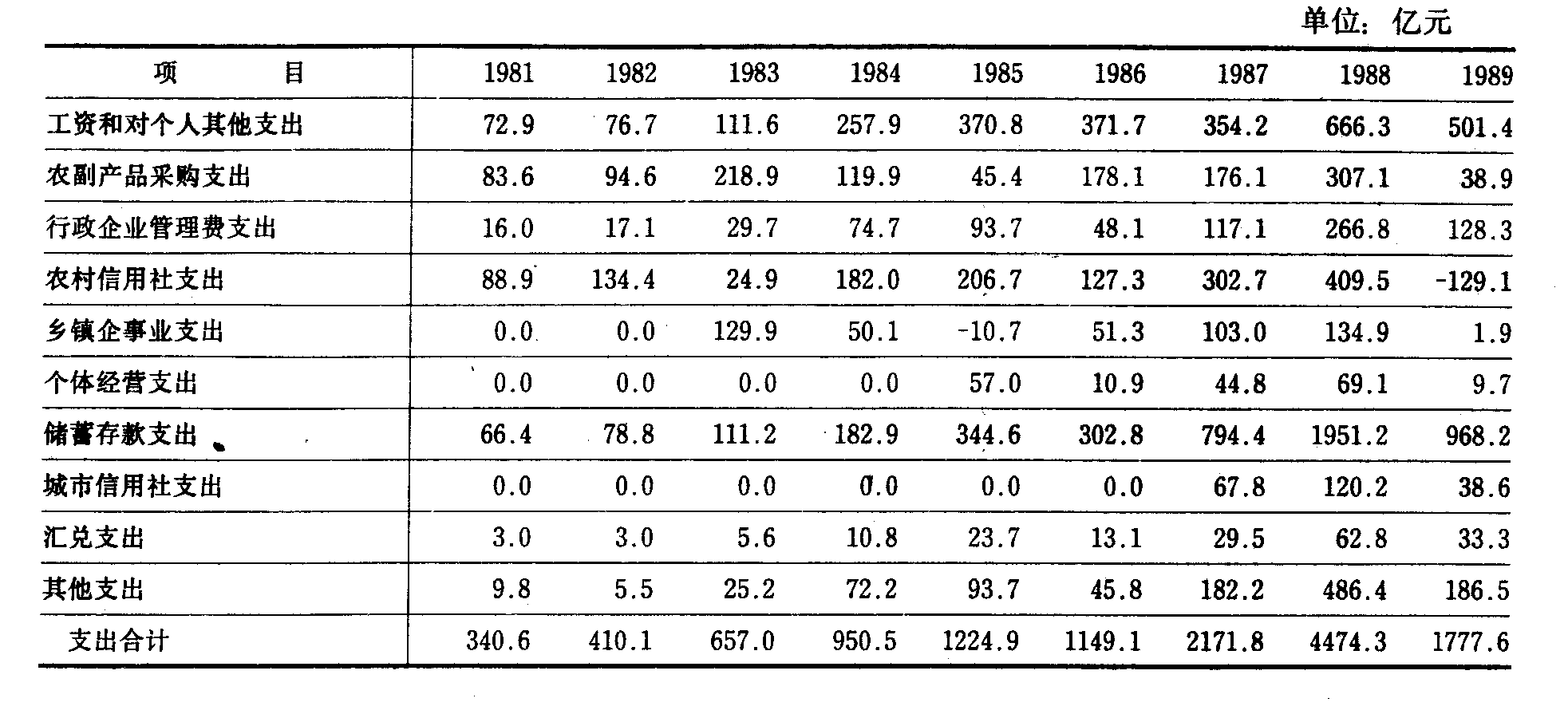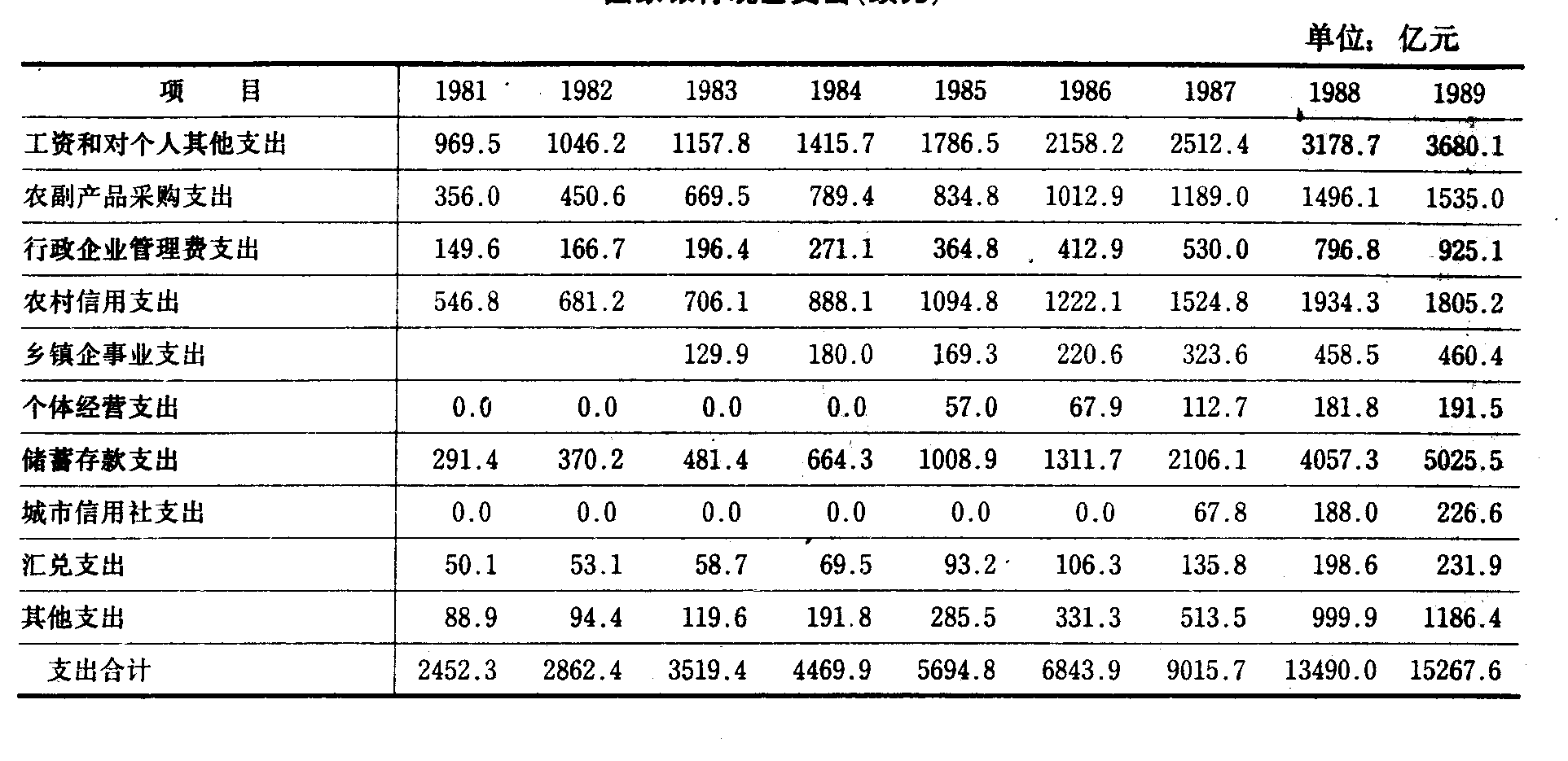 注:1981年后数字含建设银行,1987年后数字含交通银行、中信实业银行(资金运用表同)。 国家银行信贷资金运用(年末余额)