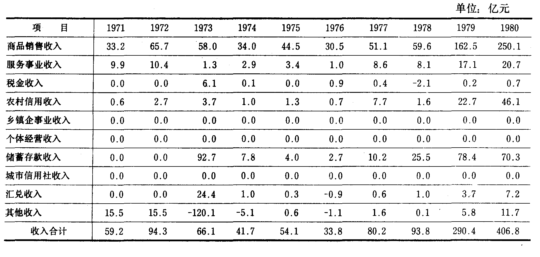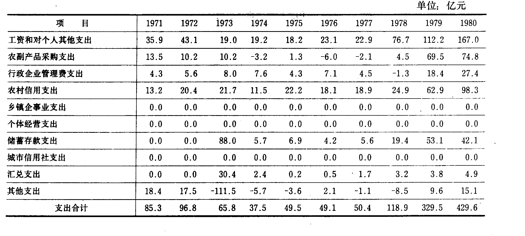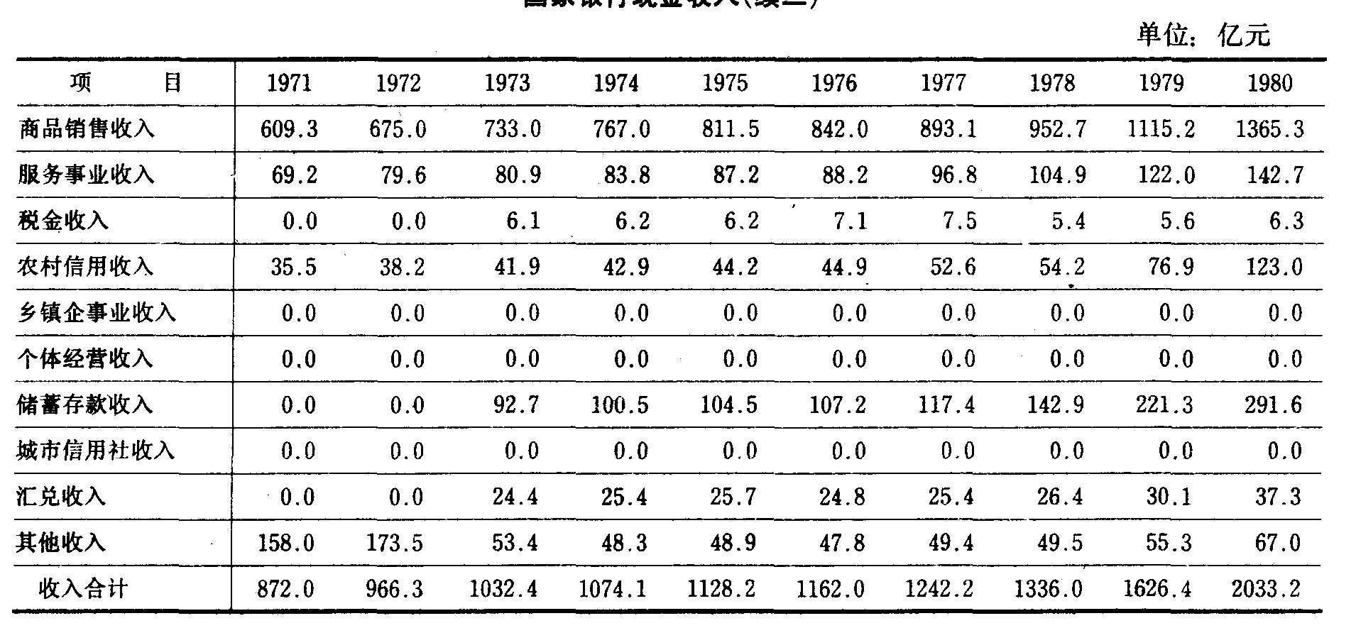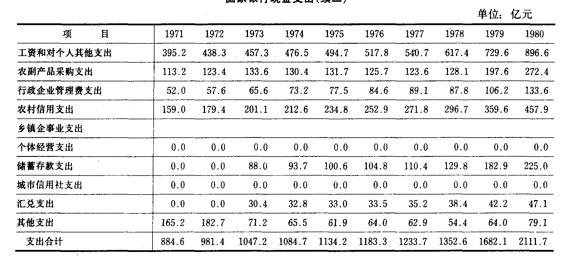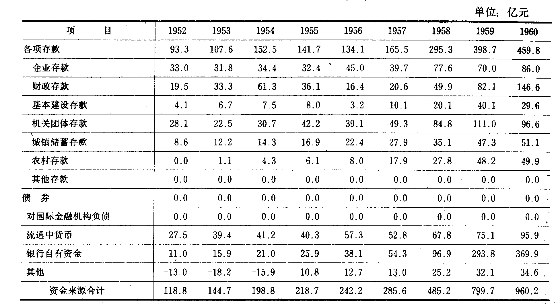 注:1981年后数字含建设银行,1987年后数字含交通银行、中信实业银行(资金运用表同)。 国家银行信贷资金运用(年末余额)