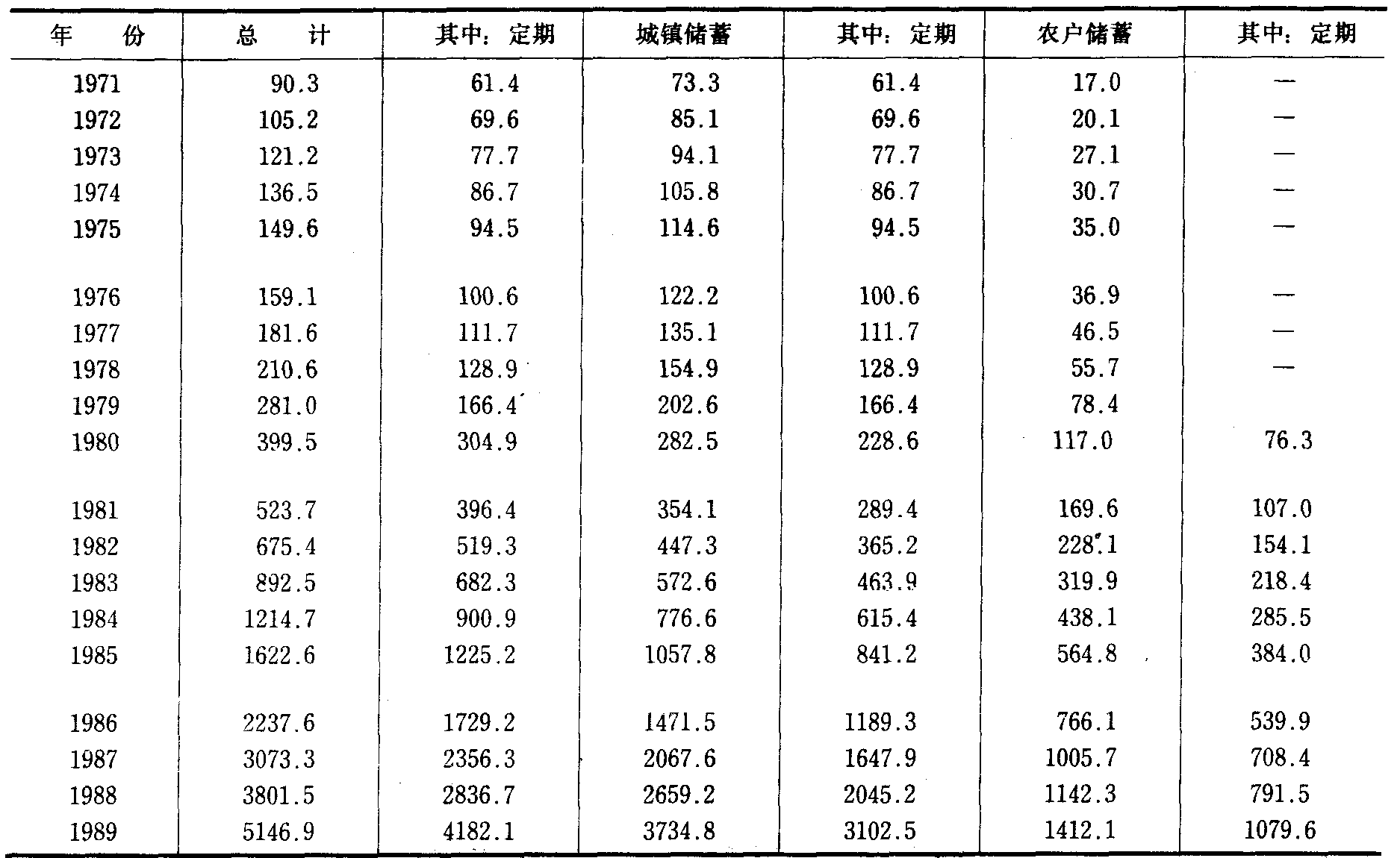 注:1979年以前定期储蓄存款中不含农户定期储蓄存款 全国城乡储蓄存款(年末余额)(续)