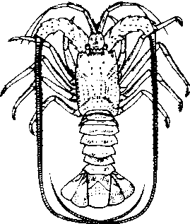 中国龙虾Chinese lobsterPanulirus stimpsoniHolthuis,甲壳纲、龙虾科,龙虾属。额板具2对短粗大棘和分散小棘。头胸甲背面密布大大小小的棘。腹部第2至第6节背面左右各有一较宽的横凹陷,其中密布短毛。体呈橄榄绿或绿中带褐色。腹部背甲上带有白色小点。为中国特有种,分布于中国南海和东海南部近岸海区,栖息于几米、十几米深的岩礁缝隙、石堆和珊瑚丛中。昼伏夜出,杂食性,多以小型双壳贝类、多毛类、小蟹、藤壶等底栖生物为食,可用小鱼作饵诱捕。繁殖季节在夏秋两季,产卵量高达数十万至百万多粒,抱卵。幼体扁平,称为叶状幼体(phyllosoma larva)。经济价值甚高,可全年捕捉,亦可人工饲养,活虾销售。