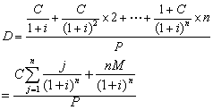 释义 | 久期Duration亦称“持续期”,或称“麦考雷久期”。债券贴现现金流的加权平均到期时间。1938年由美国经济学家麦考雷提出。久期是债券每次支付现金所用时间的加权平均值,权重为每次支付现金流的现值占现金流现值总和的比率。它综合反映到期时间、债券现金流以及市场利率等因素变动对债券价格的影响,是衡量债券利率风险的指标。一般来说,久期和债券的到期收益率成反比,和债券的剩余年限及票面利率成正比。久期越短,债券对利率的敏感性越低,风险越低;反之,久期越长,债券对利率的敏感性越高,风险越高。计算公式为:D= 久期 久期duration久期是在研究附息票债券时由Macaulay提出的概念,它比债券的到期日更为准确地刻画了债券的时间特性。具体说来,它把附息票债券根据到期日的不同看做一系列零息票债券,根据一定的折现率,计算出每一种零息票债券的现值和债券的总现值,再计算出每一种零息票债券的现值占债券的总现值的比重,并用这一比重作为权重,对零息票债券的到期日进行加权平均,结果即为附息票债券的久期。 ☚ 冲击 方差分量模型 ☛ |