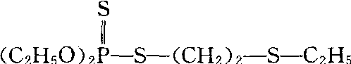 释义 | 乙拌磷disulfoton见甲拌磷。 乙拌磷disulfoton又称敌死通、M74、Dithiosystox。有机磷杀虫、杀螨剂。化学名称:O,O-二乙基-S-(2-乙硫基乙基)二硫代磷酸酯。化学结构式如下。纯品为无色液体,密度1.144在 20°/4℃,沸 点 为62℃(1. 33 Pa),20℃时蒸气压为7.2×10-5mPa。大鼠急性口服LD50为2~10 mg/kg,经皮LD50为6~20mg/kg,对鱼毒性中等虹鳟(96 h)LC50为3.0 mg/kg,属剧毒。对害虫害螨具有强烈的内吸和触杀作用。可以用来防治棉蚜、棉叶螨及蓟马等。 |