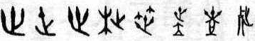 ,位北方也。 陰極昜生, 故易曰龍戰於野。 戰者接也。 象人裹妊之形。承亥壬以子生之敘也。壬與巫同意。壬承辛象人脛,脛任體也。 凡壬之屬皆从壬】可能為捲線之器形 (