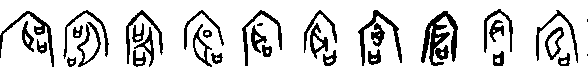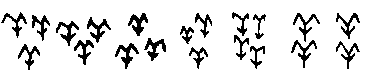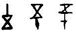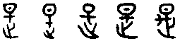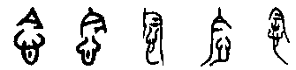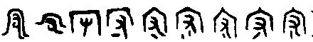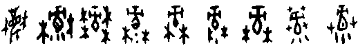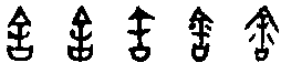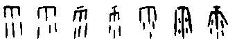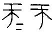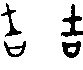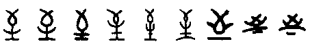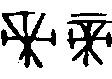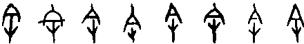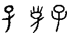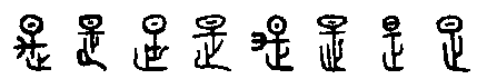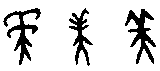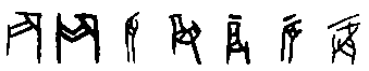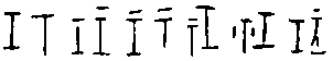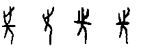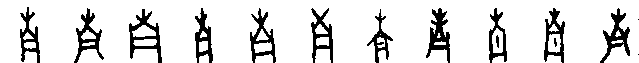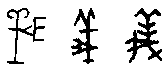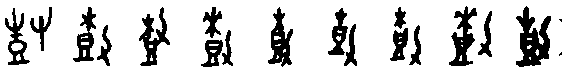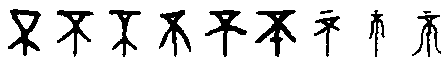 直線中增一點,點又成短劃: 匋(字41)、告(字61)、章(字82)、羊(字85)、十(字117)、屰(字123)、望(字144)、聖(字218)、年(字247)、壬、世、率。