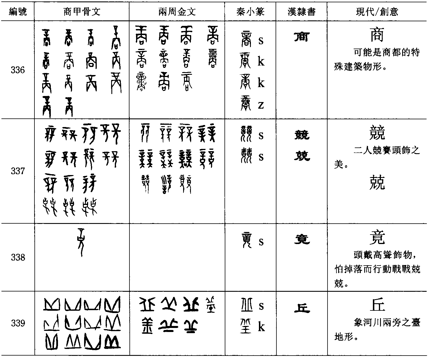 )、雨、辛、辰、不、可、商(字336)、競(字337)、竟(字338)。