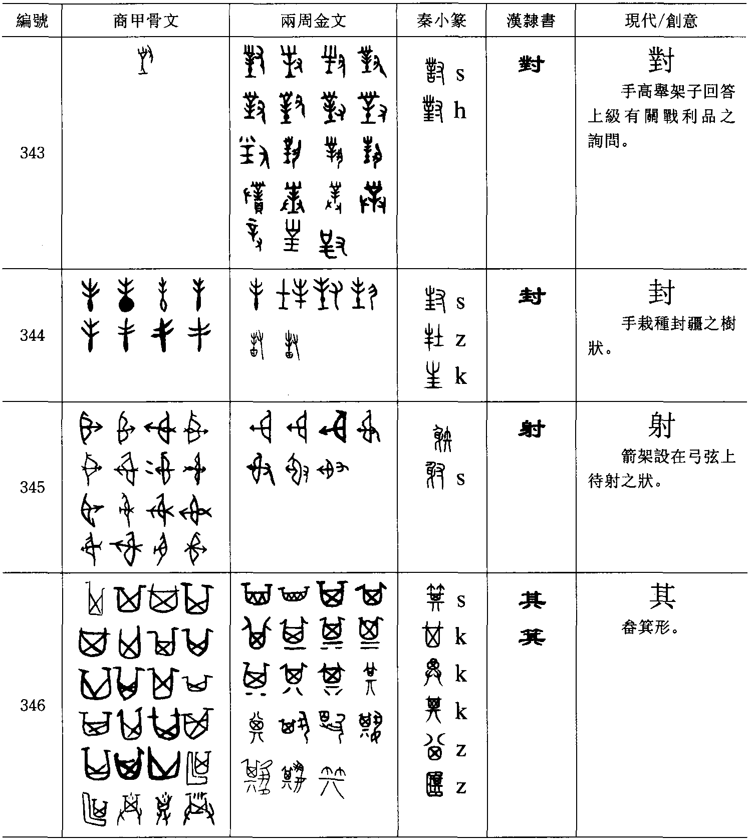 ) 、對(字343)、封(字344)、射(字345)、尌、尉、守。