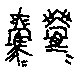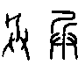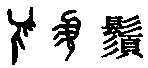 㪔(字307)為手持杖撲打麻以分析纖維, 散(字308)為在竹葉上碎肉, 二者同音而合一 (