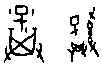 替(字160),二形,兩人並立於深坑,不考慮合作脫險(如站在他人肩上)則無濟於事。另一形作隊伍排列不齊,有礙觀瞻而廢事。立與夫字形相近(