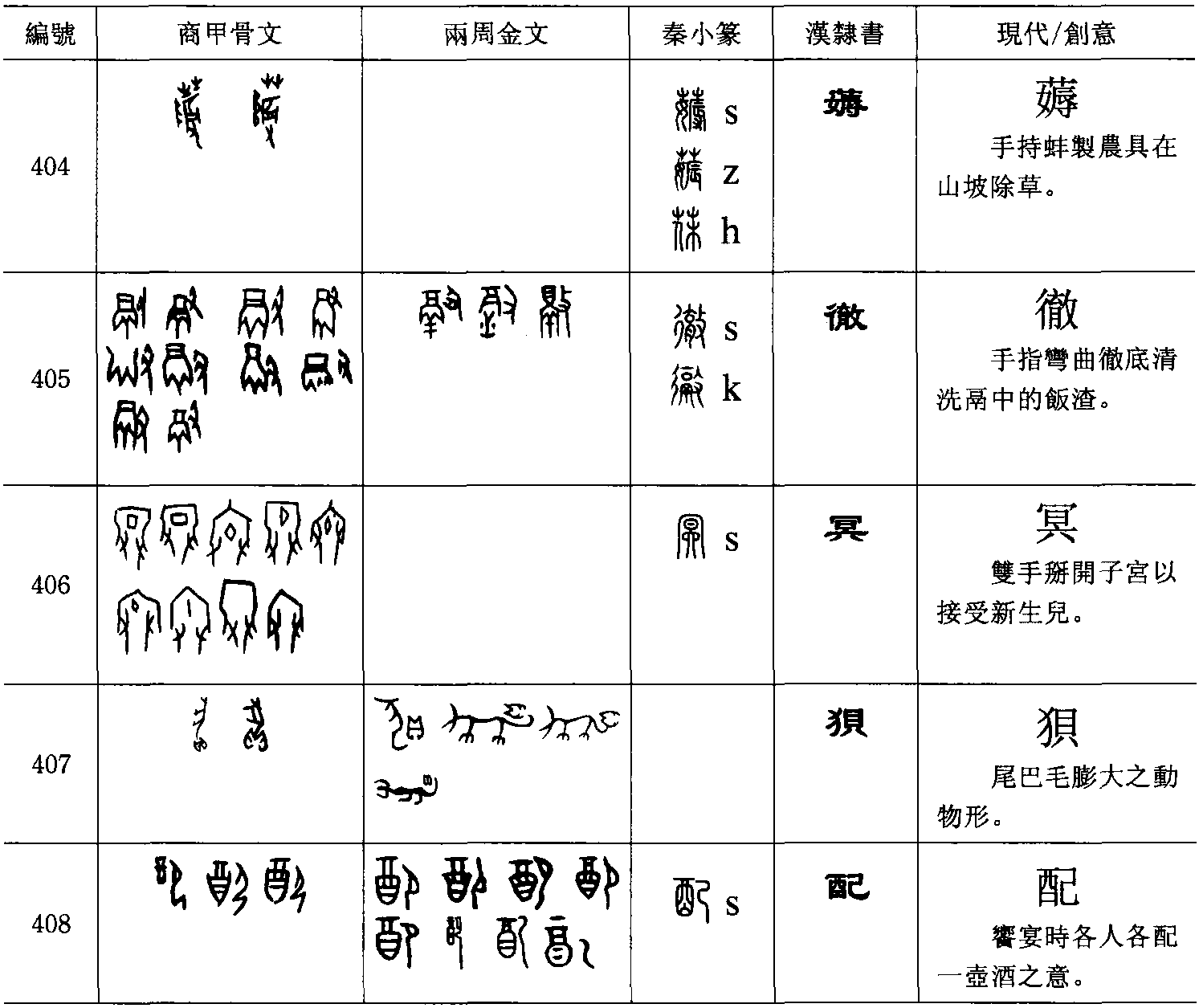盡(字304)為手持刷洗皿,燼(305)為手持火箸滅皿中火燼,與手持筆之字形聿相近(
