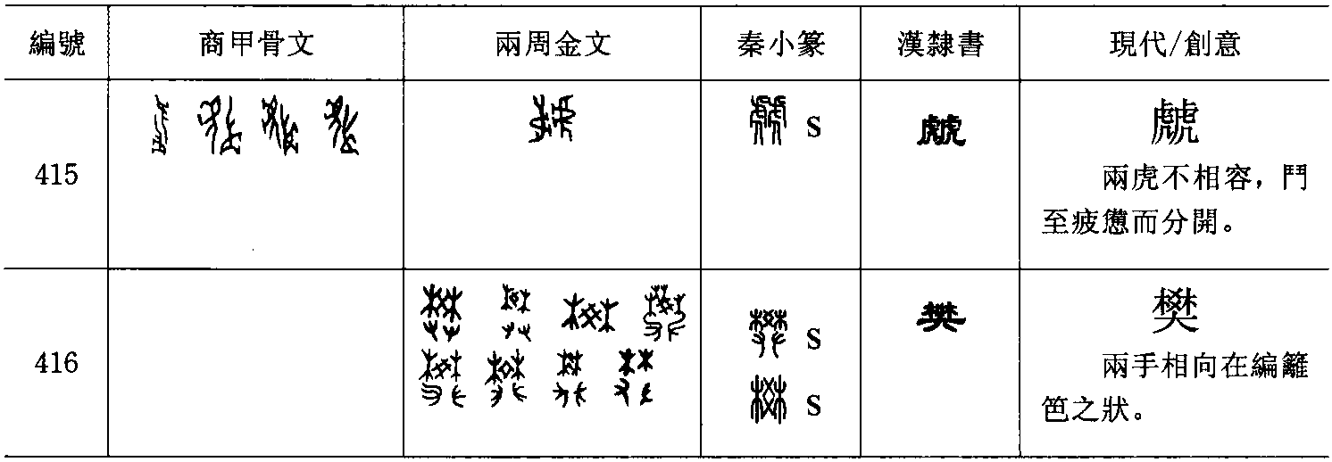 ,虎怒也。从二虎。 凡虤之屬皆从虤】,兩虎不相容,鬥至疲憊而分開,變異向背離為同向並排。