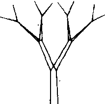 释义 | 二叉分枝dichotomous branching植物体顶端生长点的原始细胞,平均分为两个新的生长点,产生成对分枝的一种分枝形式。有些植物在个体生长发育过程中,二叉分枝可以反复进行。如鹿角菜、网地藻(Dictyota di-chotoma)、浮苔(Ricciocarpus natans)、地钱、松叶蕨(Psilotum nudum)等。 二叉分枝 |