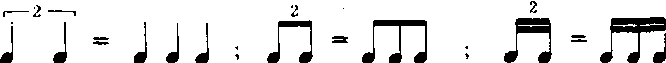 释义 | 二连音 二连音Erlianyin节奏划分的特殊形式。用同等时值的两个音符来代替同等时值的三个音符,便形成了二连音。记谱时在组成二连音的二个音符上方或下方用数字2来表示。如 ☚ 五连音 时值 ☛ 二连音duplet |