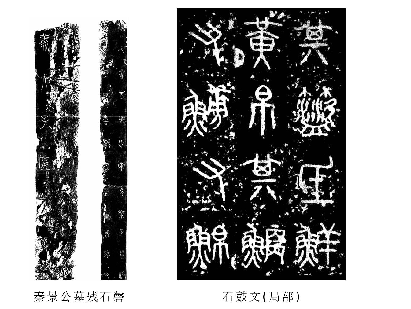 籀文指《史籀篇》里使用的文字,又称“大篆”。传说《史籀篇》是由周宣王太史籀所编纂的“周时史官教学童书”。《史籀篇》汉代已部分散佚,后代失传。《说文解字·序》说:“及宣王太史籀,著大篆十五篇,与古文或异。”段玉裁注:“篆者,引书之谓。太史籀作者大篆……凡许书中云篆书者小篆也,云籀文者大篆也。”[1]段玉裁说:“大篆之名,上别乎古文,下别乎小篆。”[2]“大篆”所指比较含糊,汉人所谓秦八体之一的“大篆”,大概是指当时所见不同于古文和小篆的秦系文字,也可以说就是籀文。《说文》今本尚保留籀文220余字,字体大抵相当于西周晚期或春秋早期的金文字体。王国维认为:周宣王太史籀之说,“盖出刘向父子,而班、许从之”,推测“太史籀书”当读作“太史读书”,太史籀本无其人。他还对籀文字体进行了分析,指出:籀文“作法大抵左右均一,稍涉繁复,象形、象事之意少,而规旋矩折之意多。推其体势,实上承石鼓文,下启秦刻石,与篆文极近”。“《史籀》篇文字,秦之文字,即周秦间西土之文字也。”其后他又明确提出“战国时秦用籀文六国用古文说”[3]。籀文相当于西周晚期的字体,春秋战国时期经过地处西部的秦国沿袭使用而得以传承,汉人称这个阶段的秦系文字为“大篆”,故大体上西周晚期到秦之间的字体可以称之为籀文,也可以称之为“大篆”[4]。如图: